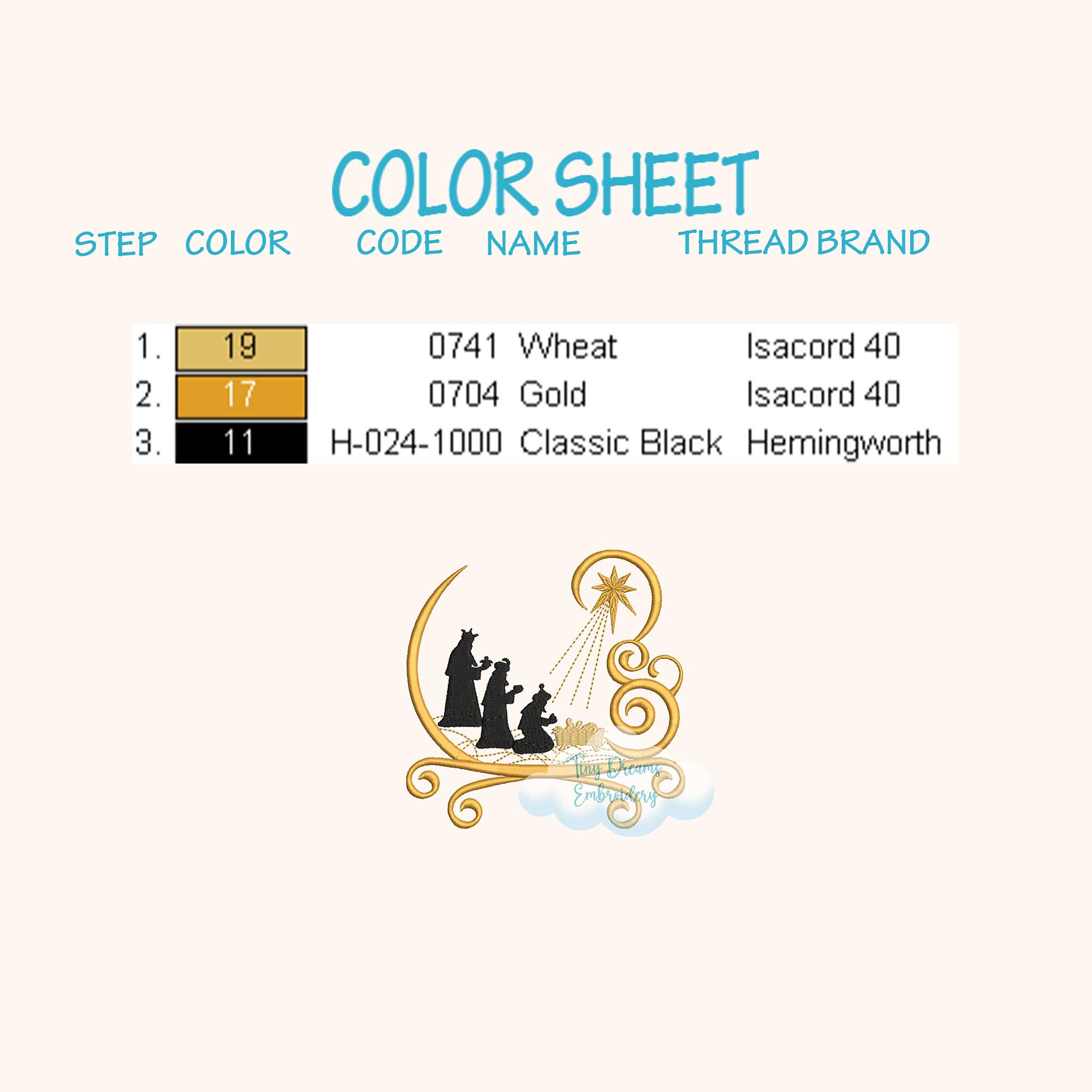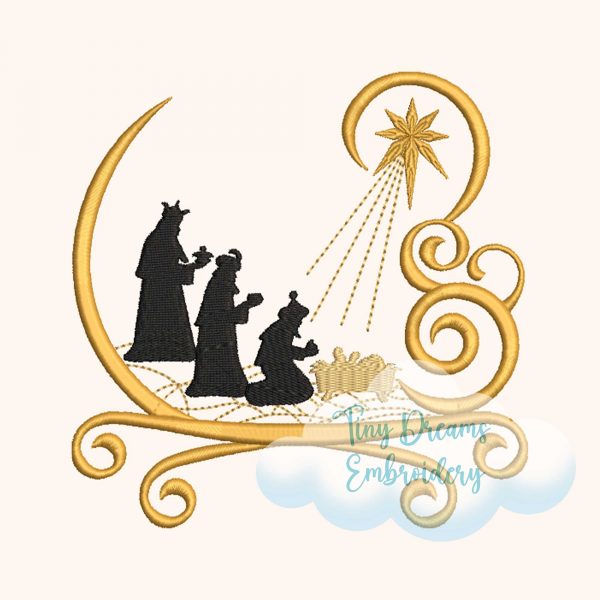 Capture the essence of the Christmas Epiphany with the Three Kings Adore digital machine embroidery design. This exquisite embroidery showcases the reverence of the Three Wise Men towards Baby Jesus, enveloped in a delicate swirl of devotion.