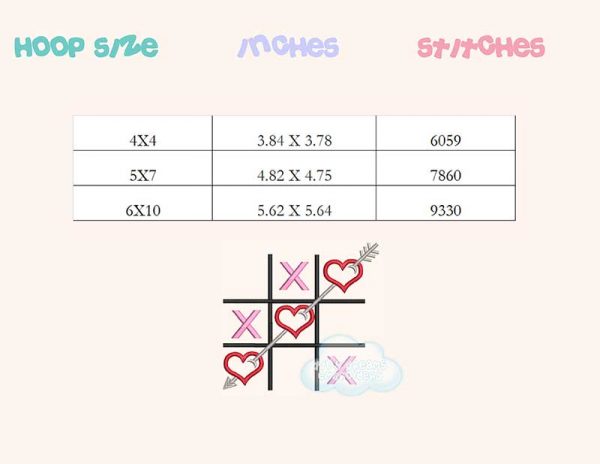 Be the first to review “Tic tac hearts valentine’s day embroidery design”
