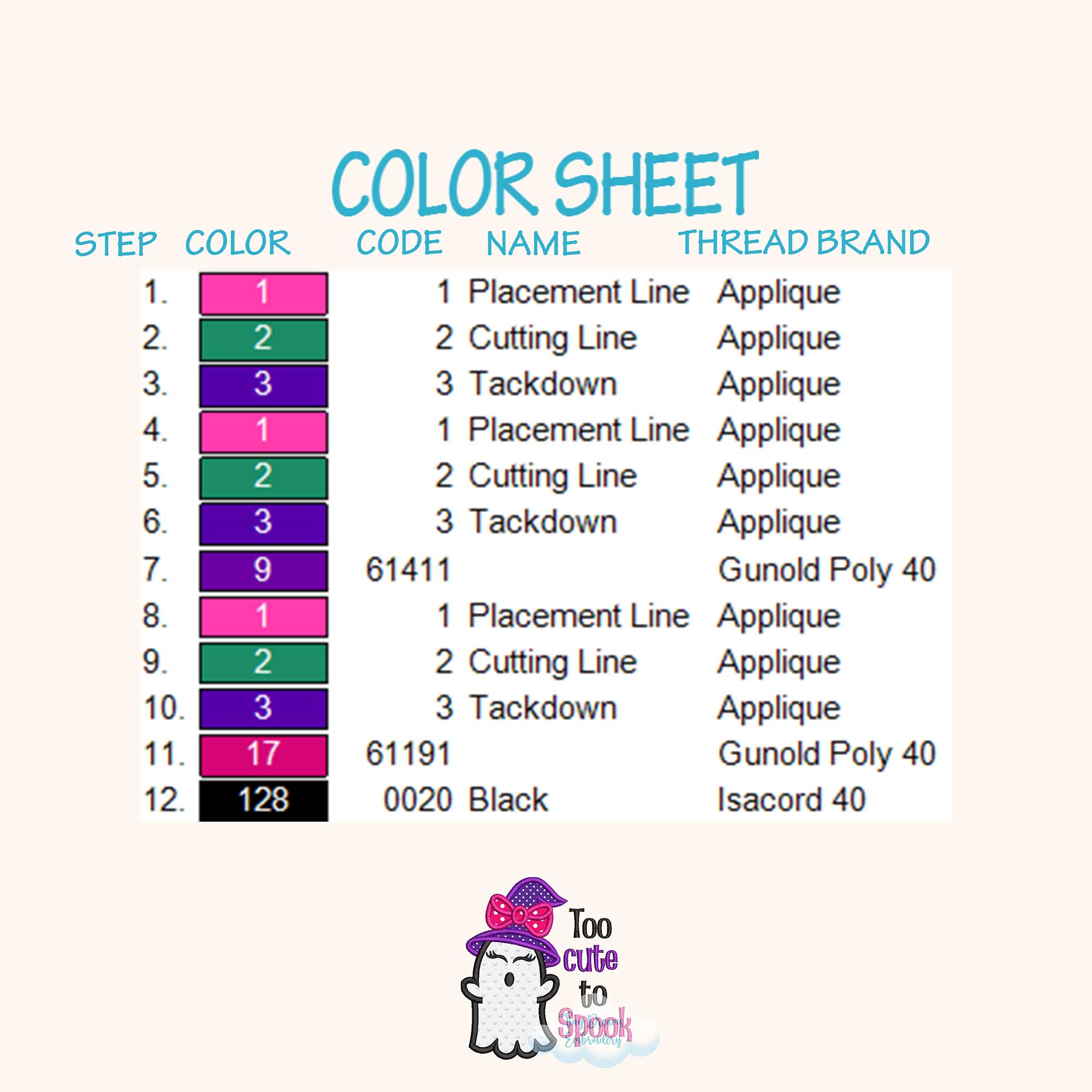 Too Cute Applique embroidery design with a Halloween witch and ghost, perfect for spooky projects for babies. Add a fun and festive touch to your little one’s outfit this Halloween 🎃👻🧵✨
