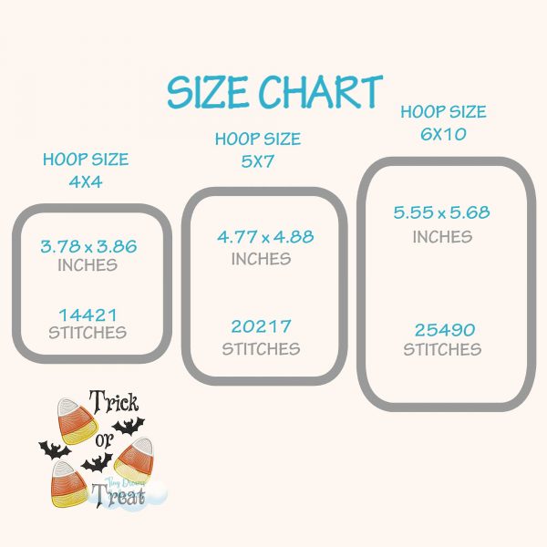 Add some Halloween fun with our Trick or Treat Digital Machine Embroidery Design. Featuring bats and candy corn, this spooky design is perfect for baby boy and girl outfits.