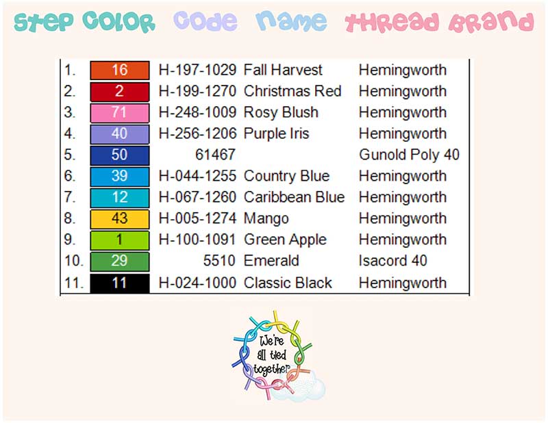The design comes in the following formats: PES, DST, EXP, HUS, JEF, VIP, VP3, XXX