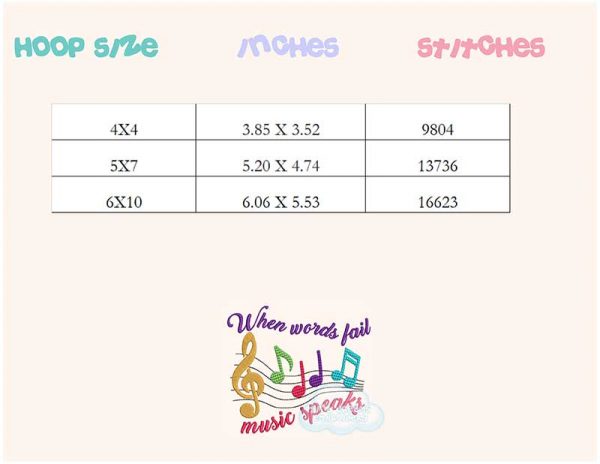 The design comes in the following formats: PES, DST, EXP, HUS, JEF, VIP, VP3, XXX