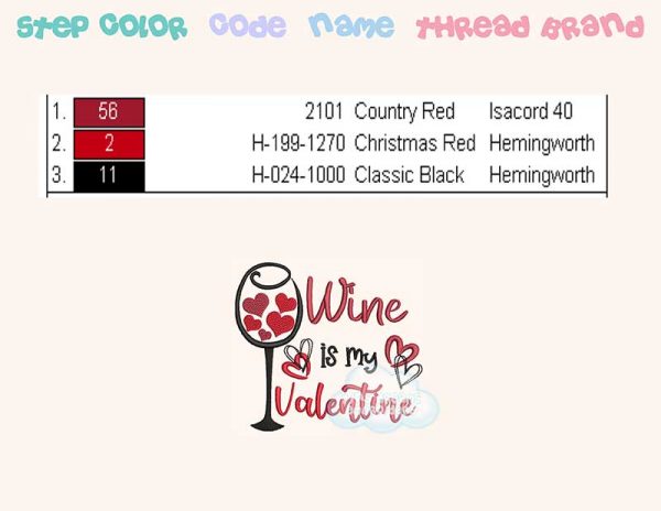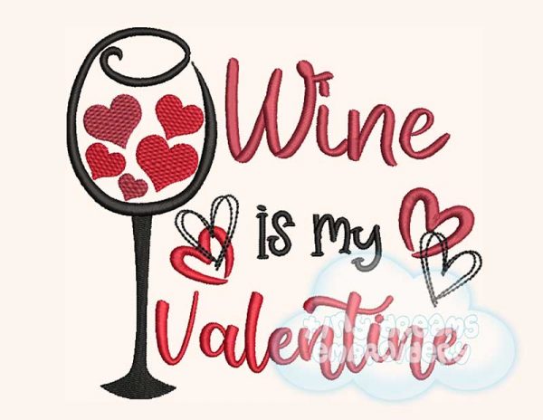 Wine is my Valentine embroidery design
