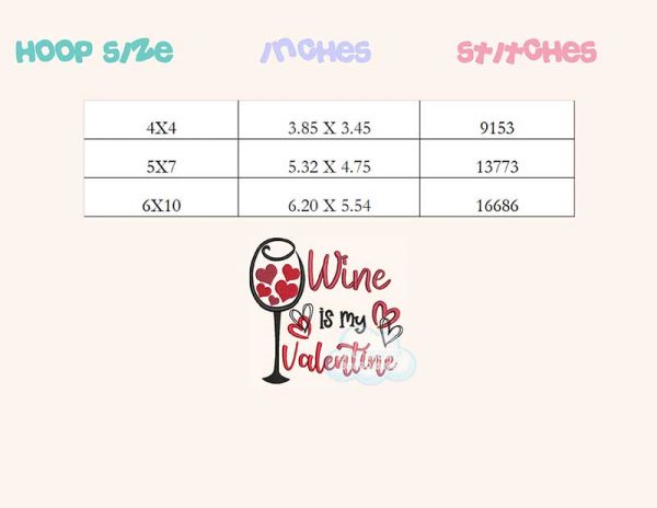 Be the first to review “Wine is my Valentine embroidery design”