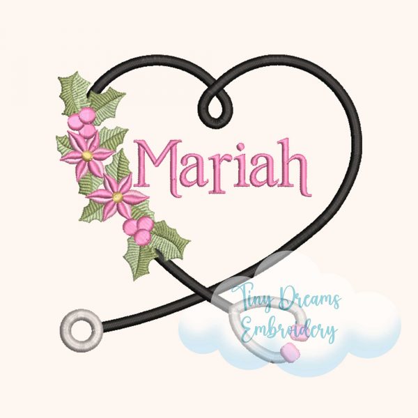 Add a festive touch to your projects with this Christmas Poinsettia Nurse Embroidery Design, featuring a mistletoe and stethoscope monogram. Instantly download this machine embroidery design for cheerful and personalized holiday creations 🎄🩺