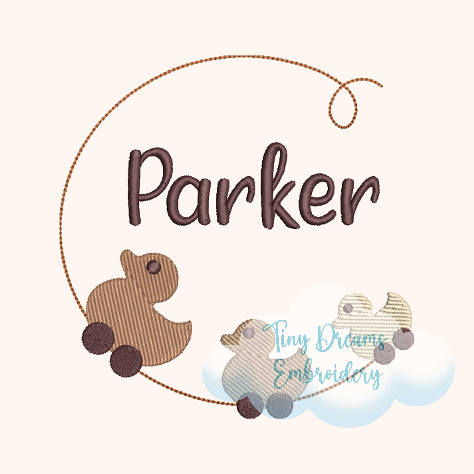 Wood Baby Duck Train Toy Embroidery Design: Custom Boy Monogram Name (Digital Download)