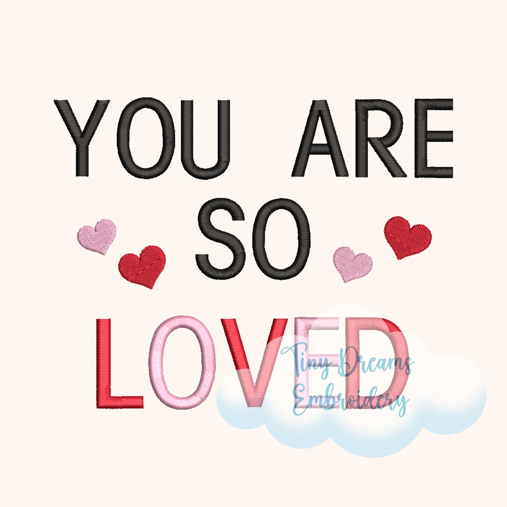 Share a heartfelt message with this You Are So Loved Embroidery Design, featuring sweet Valentine hearts perfect for gifts, décor, clothing, and love-filled projects. This digital download includes 3 sizes, making it ideal for charming and meaningful stitching. ❤️✨