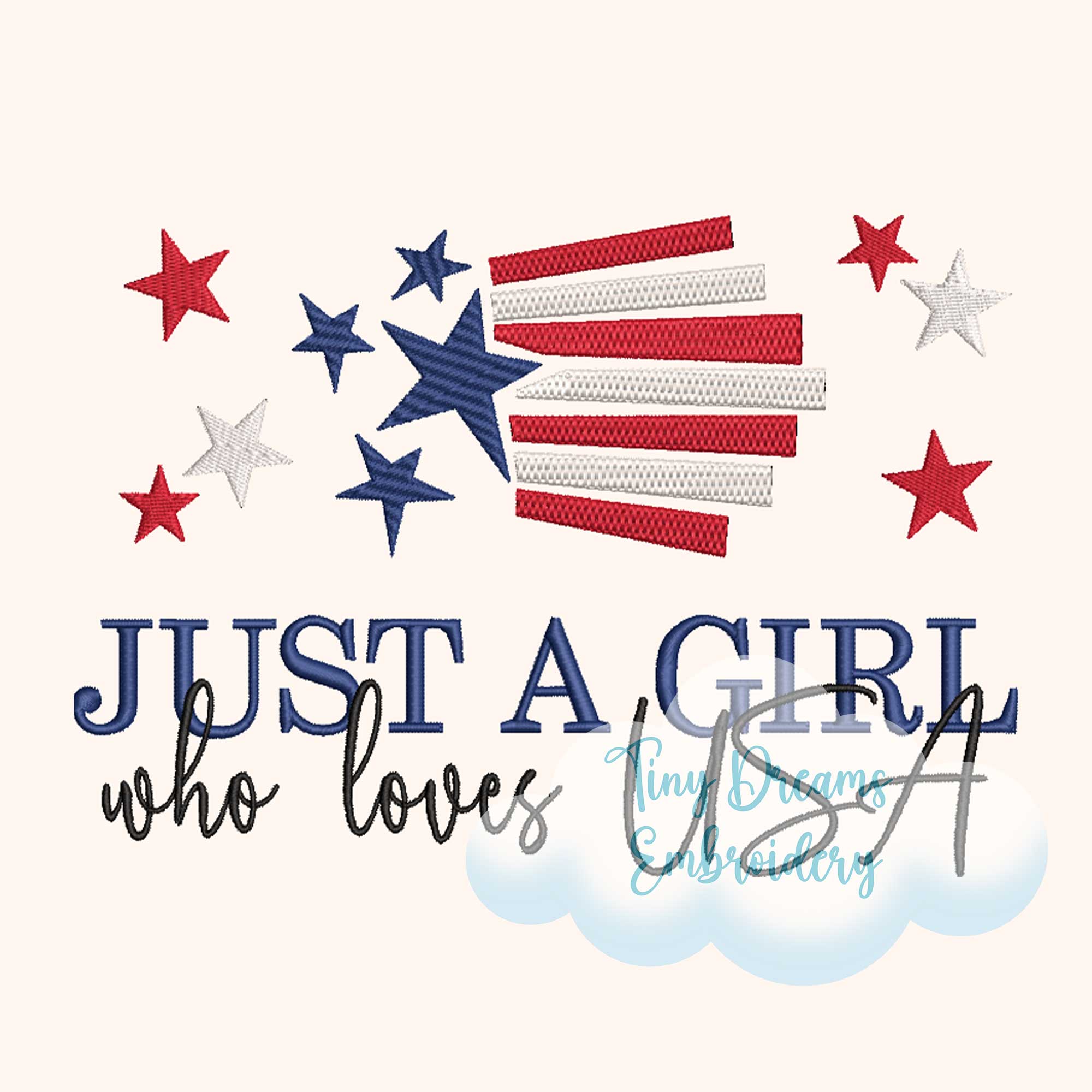 Girl Loves USA Digital Machine Embroidery Design America Design Embroidery 4 July Embroidery Design American Flag Embroidery Independence