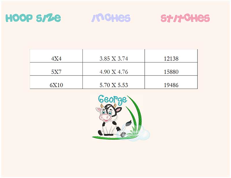 Cute cow monogram/name (name/monogram/font not included) embroidery design