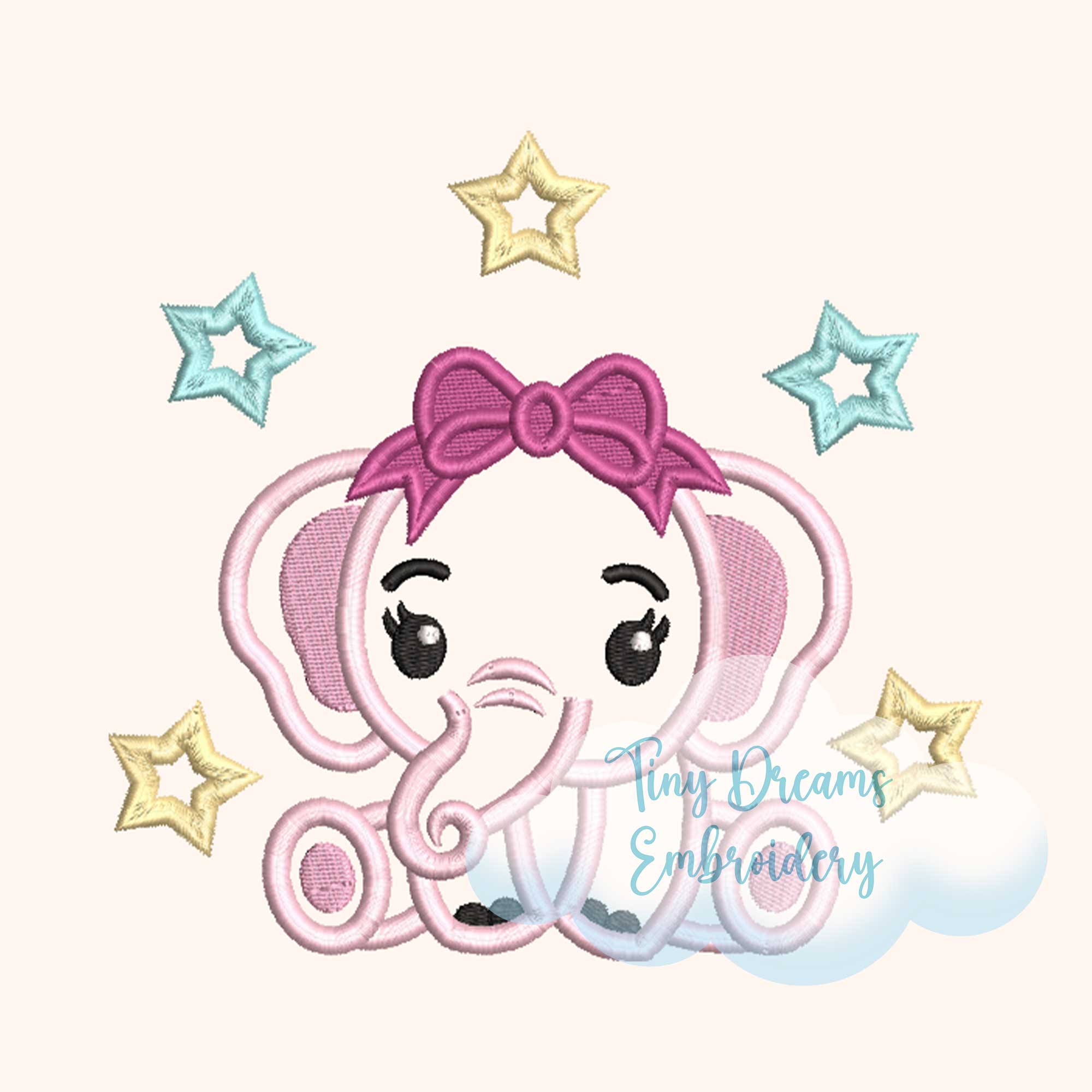 Cute Baby Girl Elephant Digital Machine Embroidery Design Baby Girl Animal Design Embroidery Bow Elephant Design Nursery Baby Girl Design