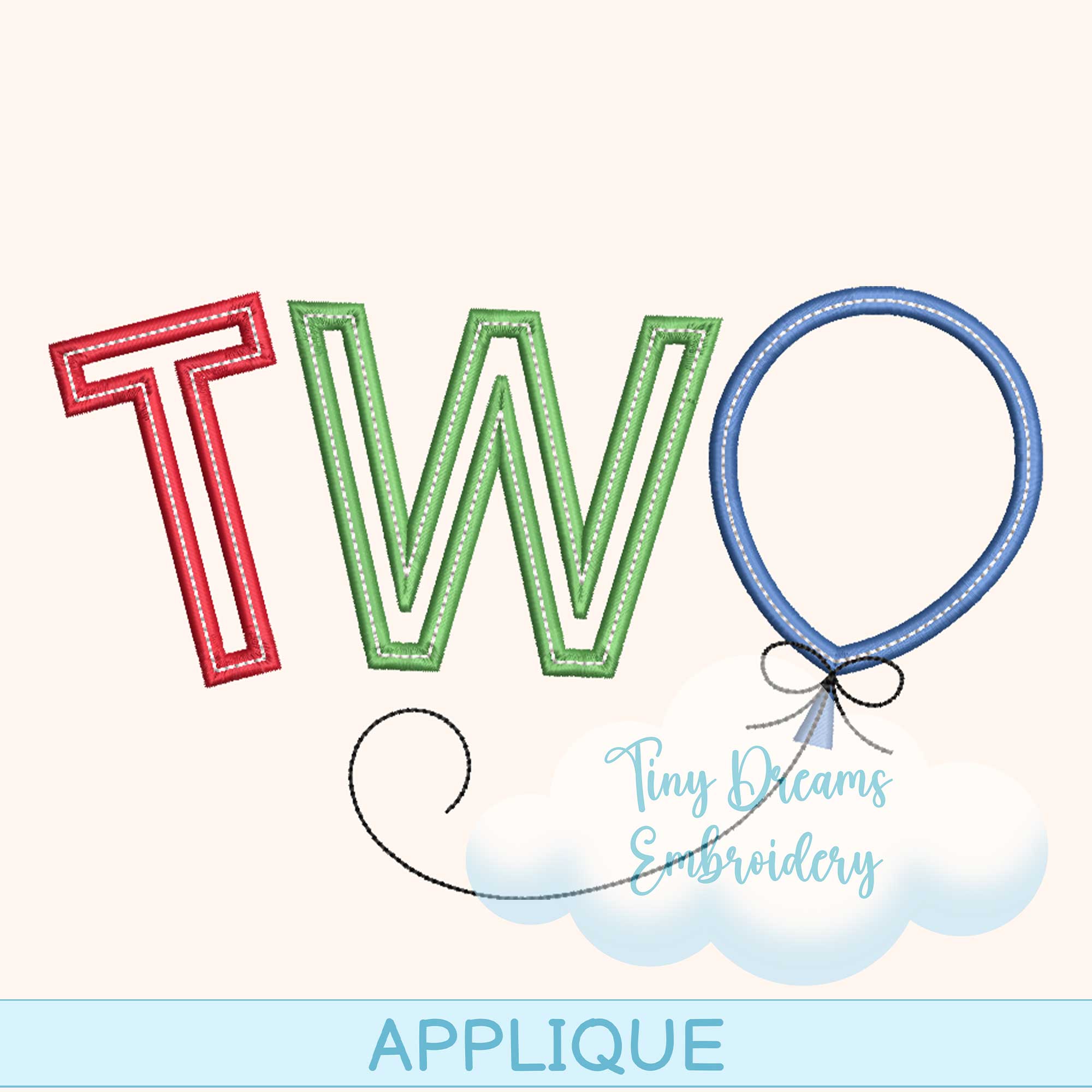 Second Year Birthday Applique Digital Machine Embroidery Design Two Birthday Balloon Embroidery Design Applique Birthday Balloon Embroidery