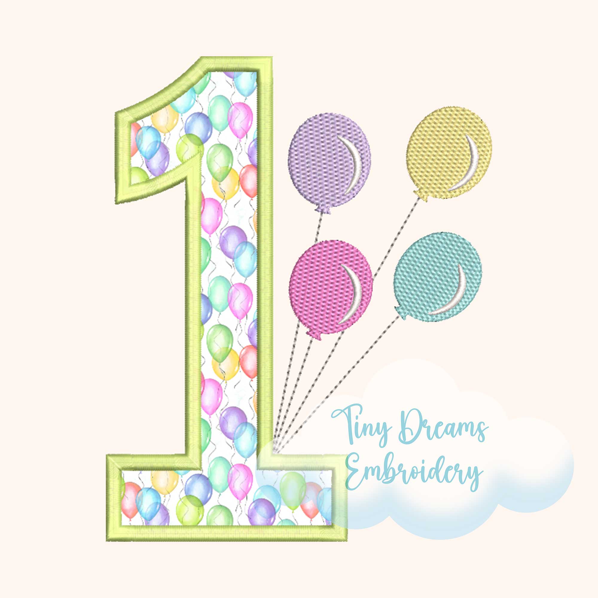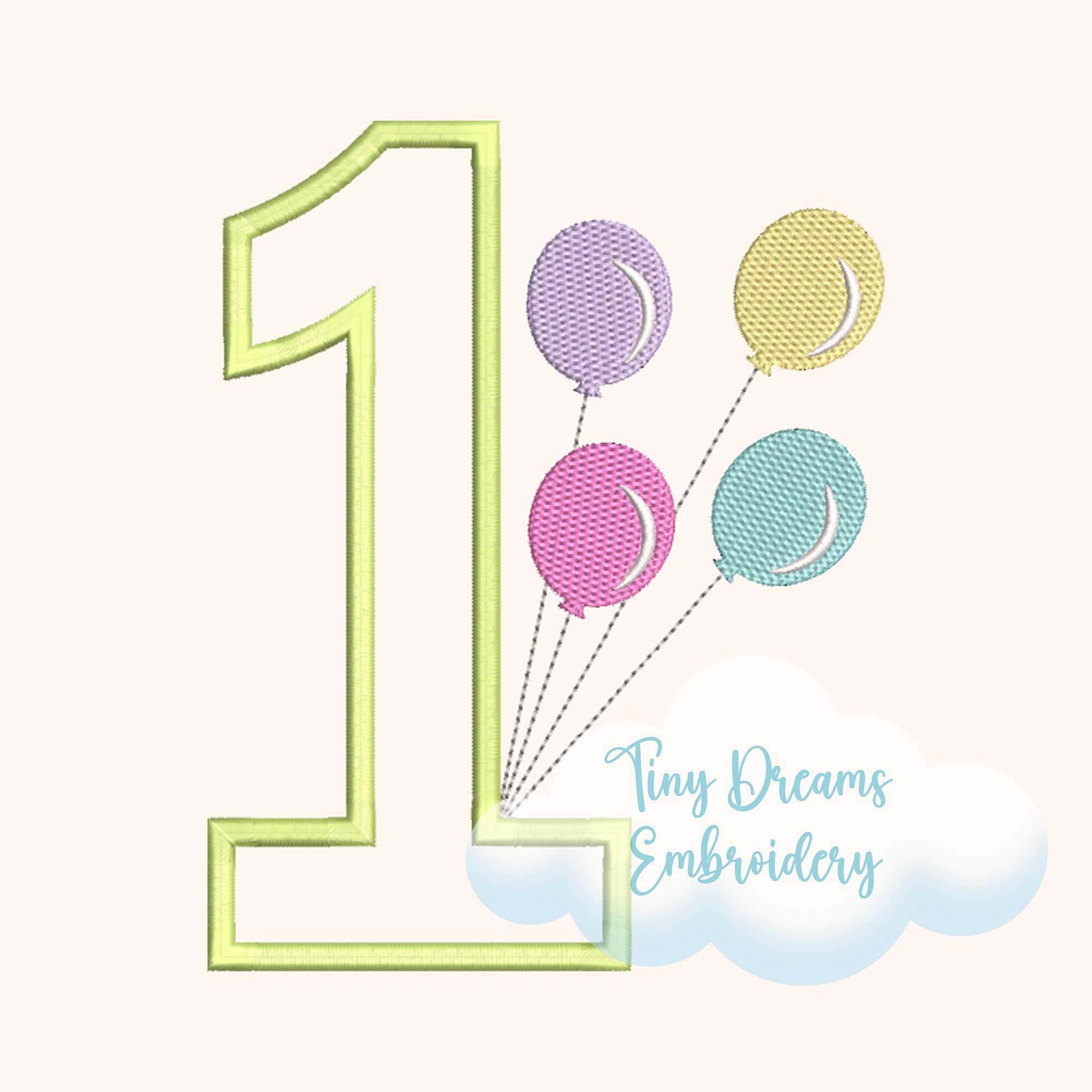 First Birthday Applique Digital Machine Embroidery Design Baby First Embroidery Design Boy Girl Birthday Applique Embroidery Design Balloon