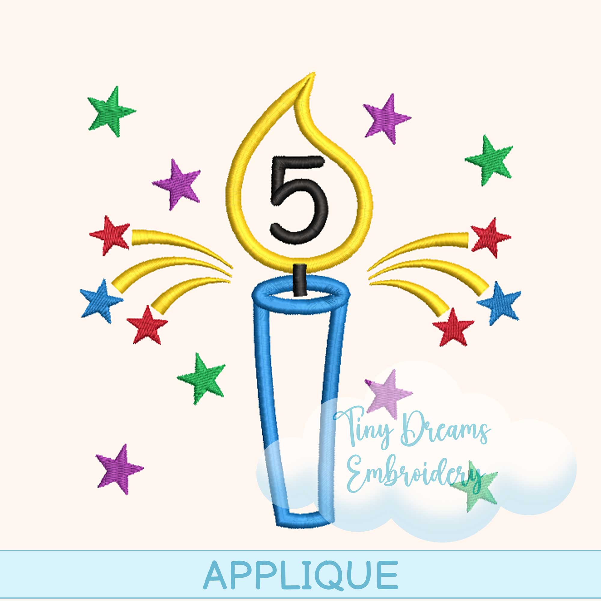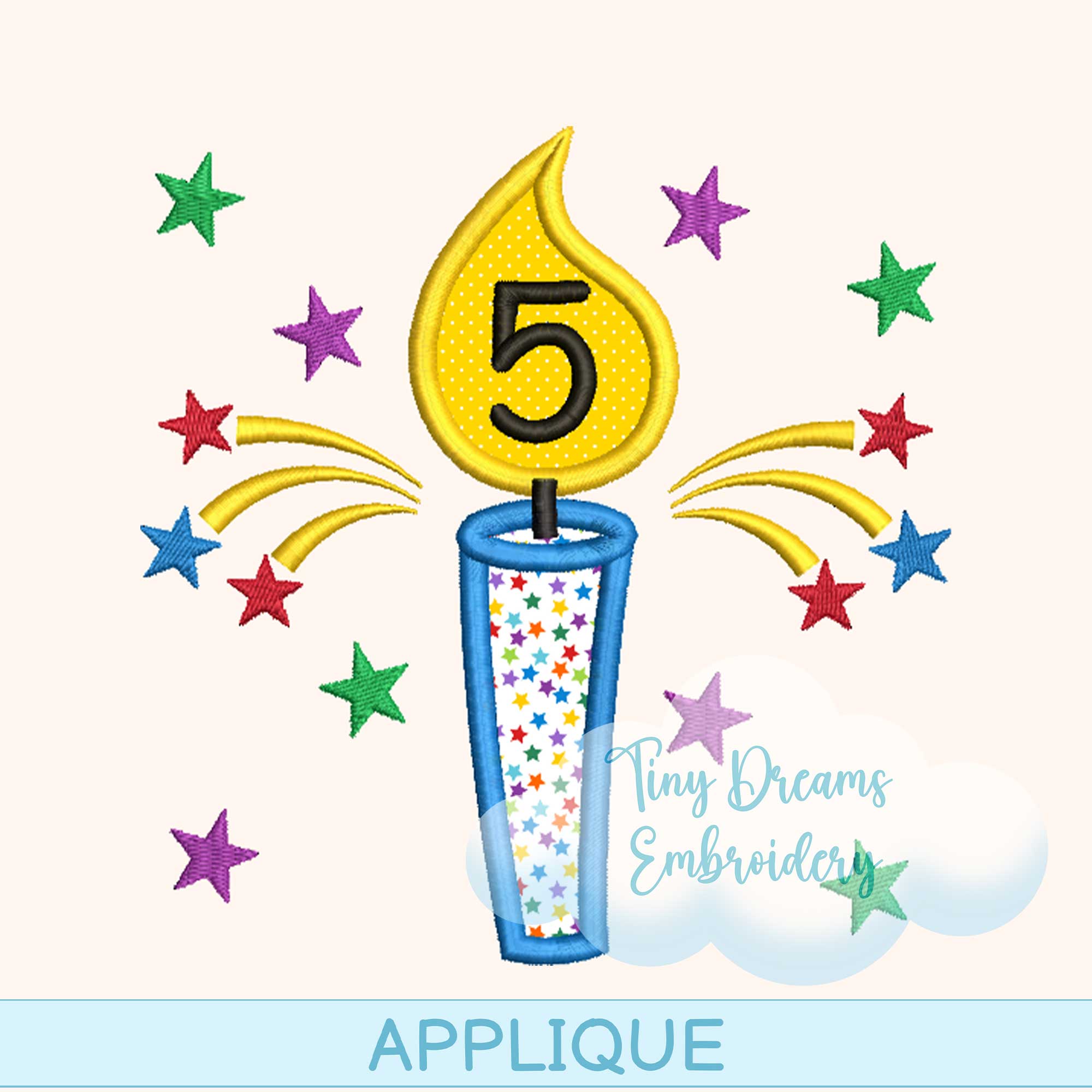 Fifth Birthday Candle Applique Digital Machine Embroidery Design Five Years Embroidery Design Boy Girl Birthday Candle Star Applique Design