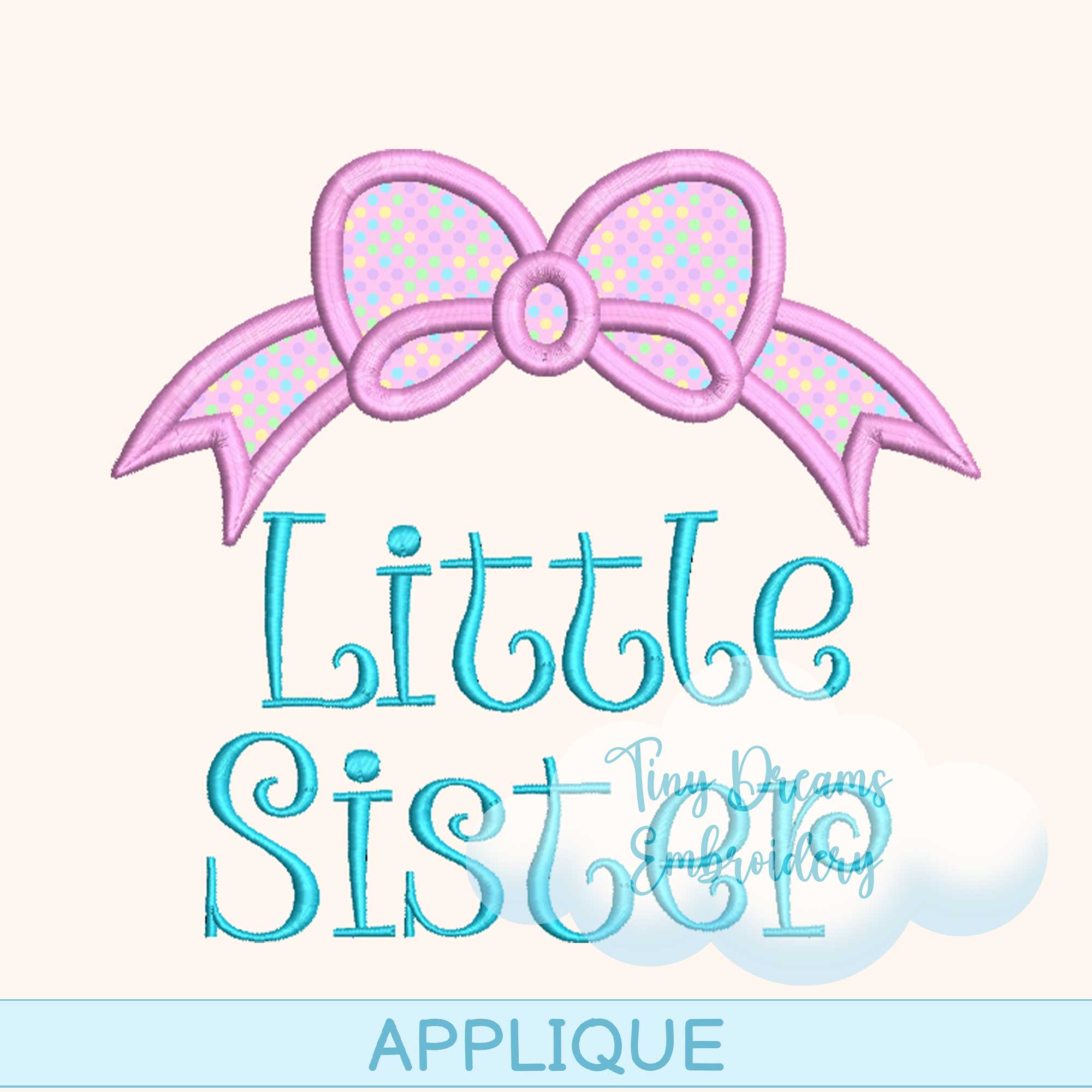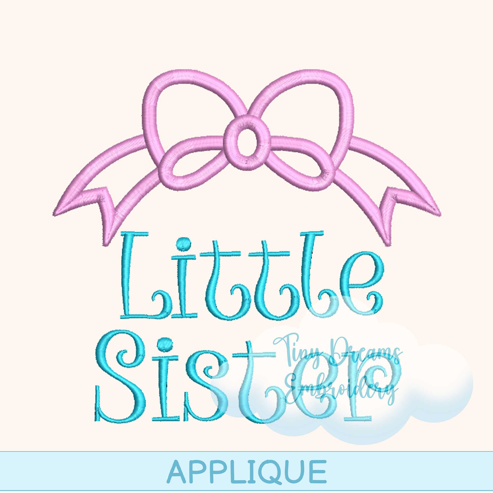 Little Sister Digital Machine Embroidery Design Applique Bow Coquette Embroidery Design Applique Baby Girl Embroidery Applique Design Sister