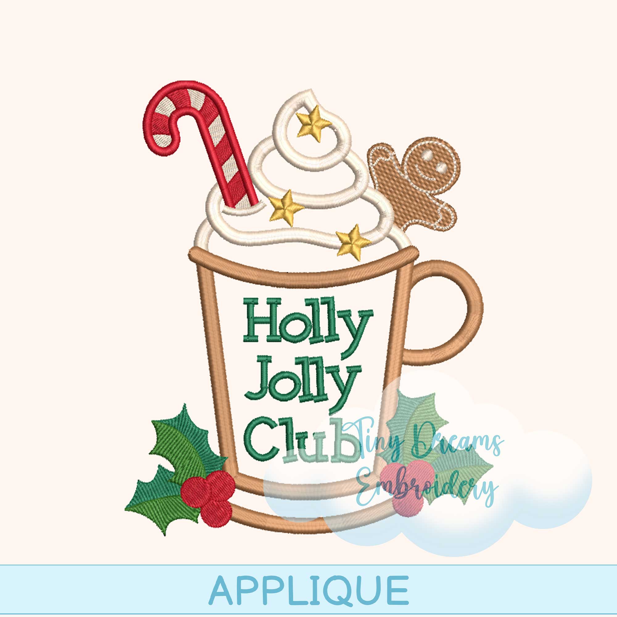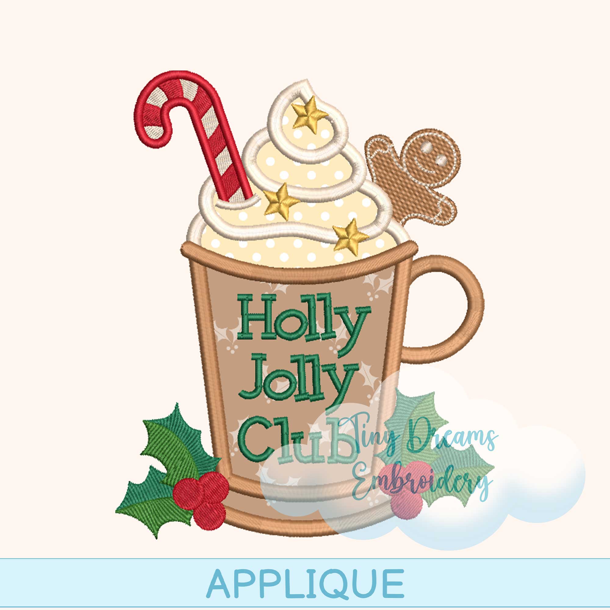 Holly Jolly Coffee Club Christmas Cup Mistletoe Gingerbread Cookie Candy Cane Embroidery Design (Digital Download)