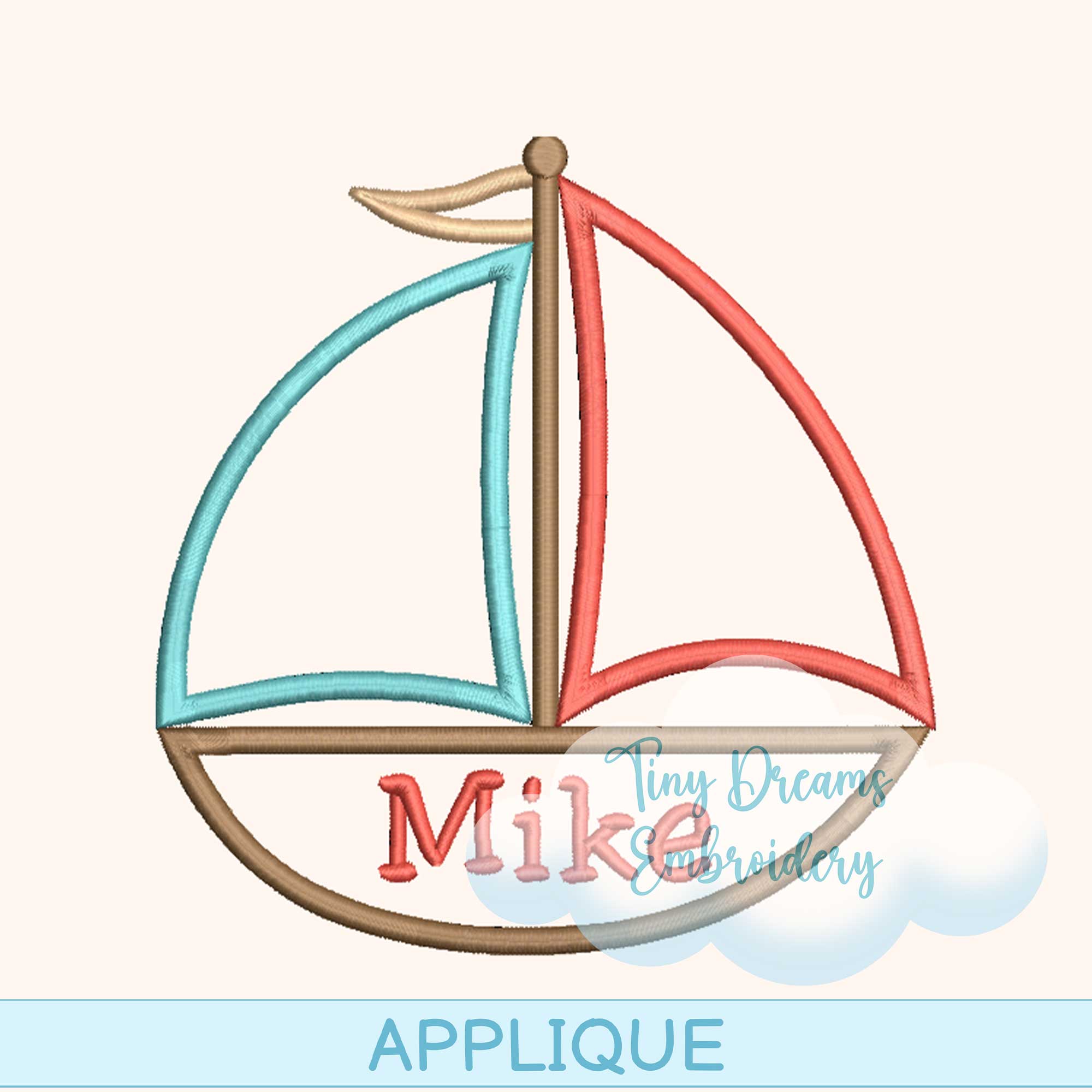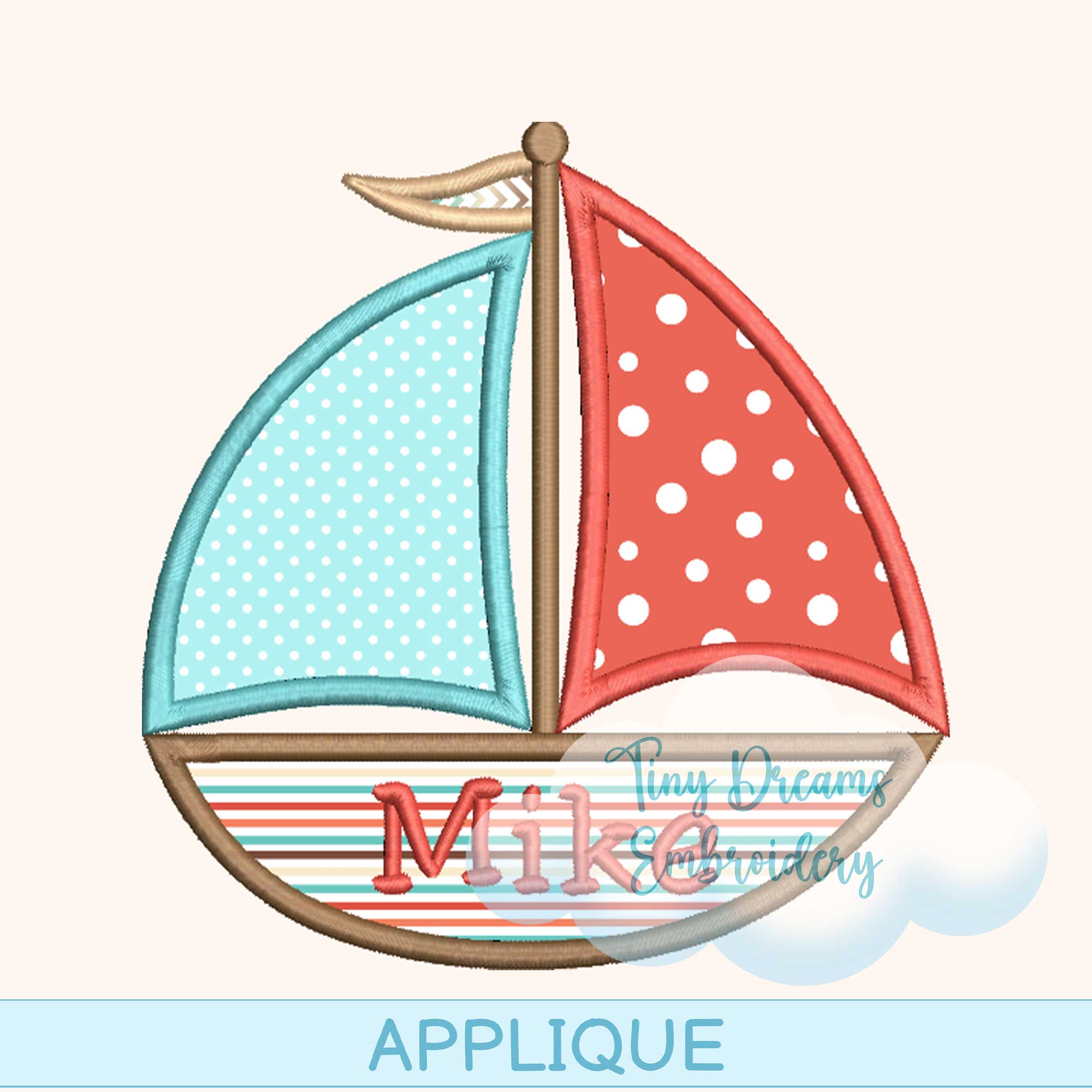 Sail Boat Applique Digital Machine Embroidery Design Monogram Beach Sea Applique Design Embroidery Pirate Personalized Name Baby Applique