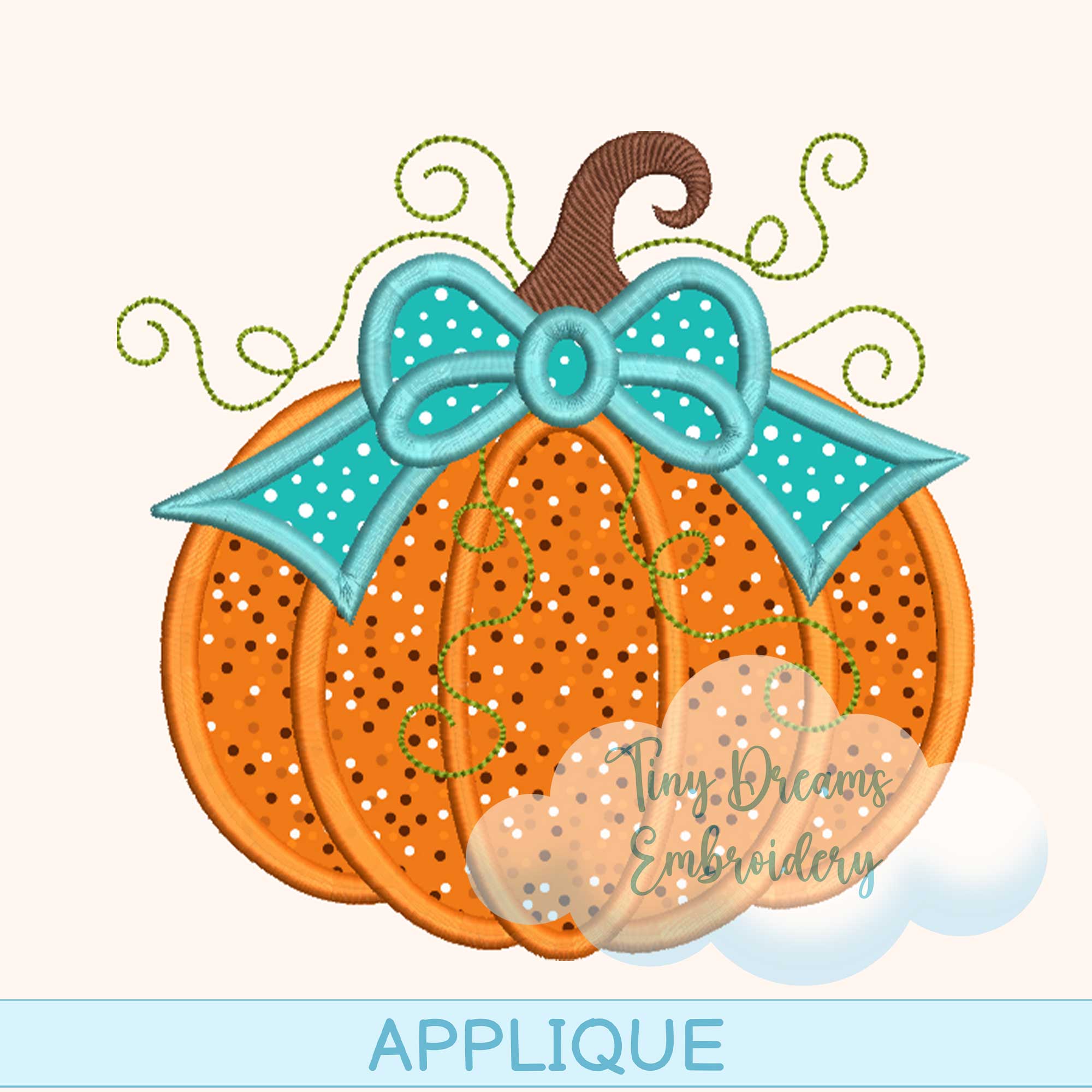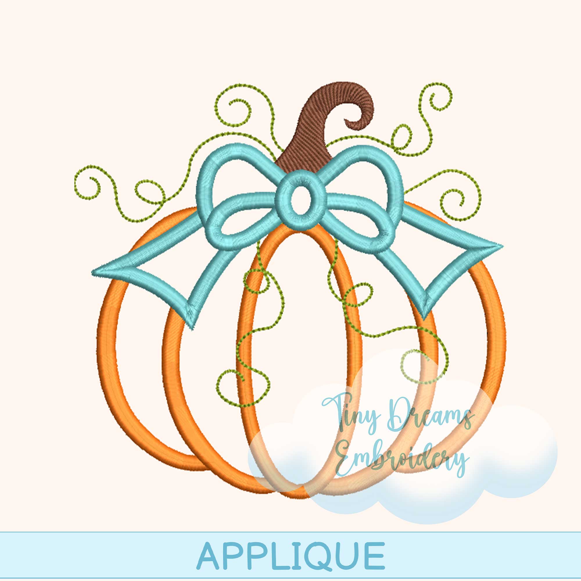 Pumpkin Bow Applique Digital Machine Embroidery Design Autumn Fall Design Embroidery Thanksgiving Pumpkin Applique Embroidery Bow Design