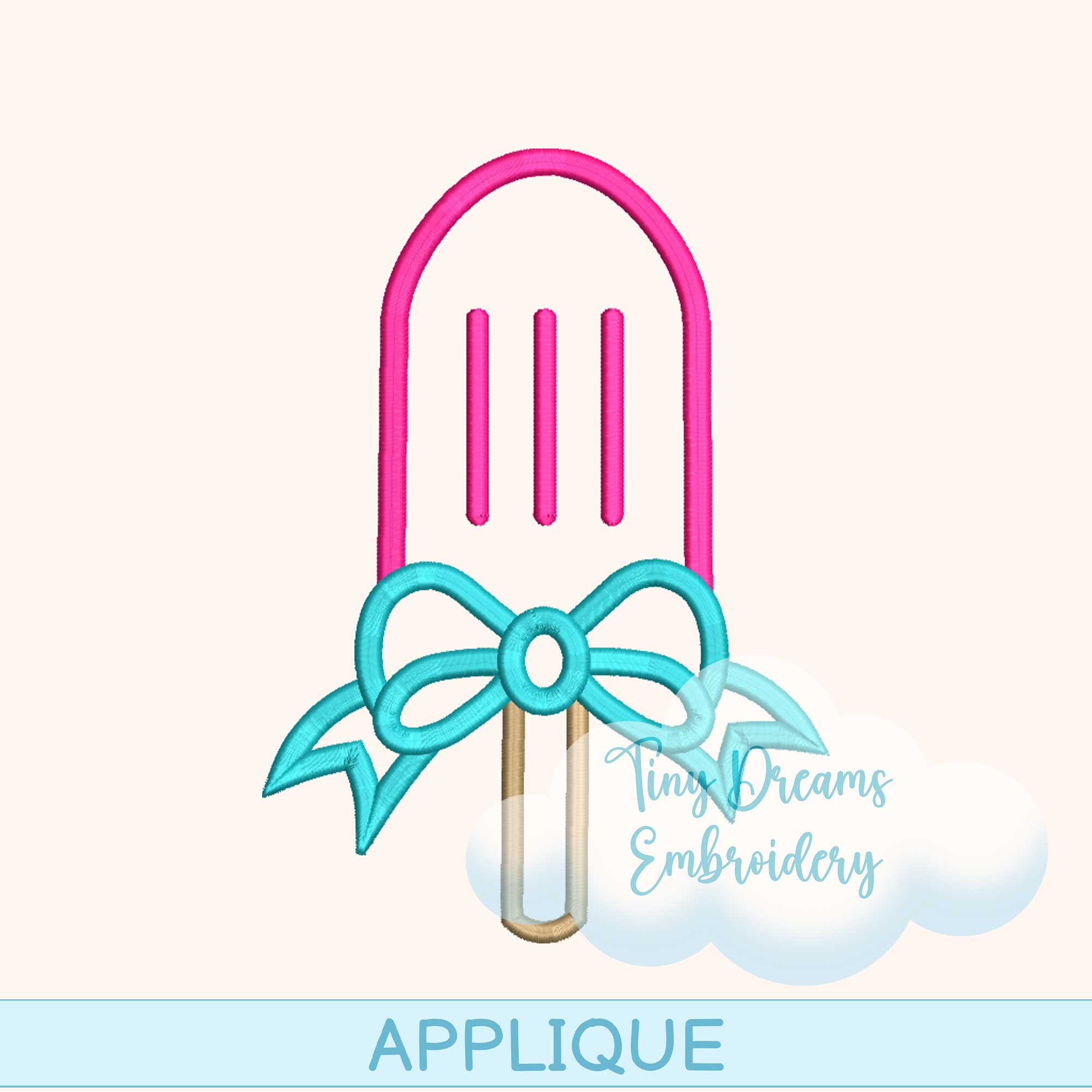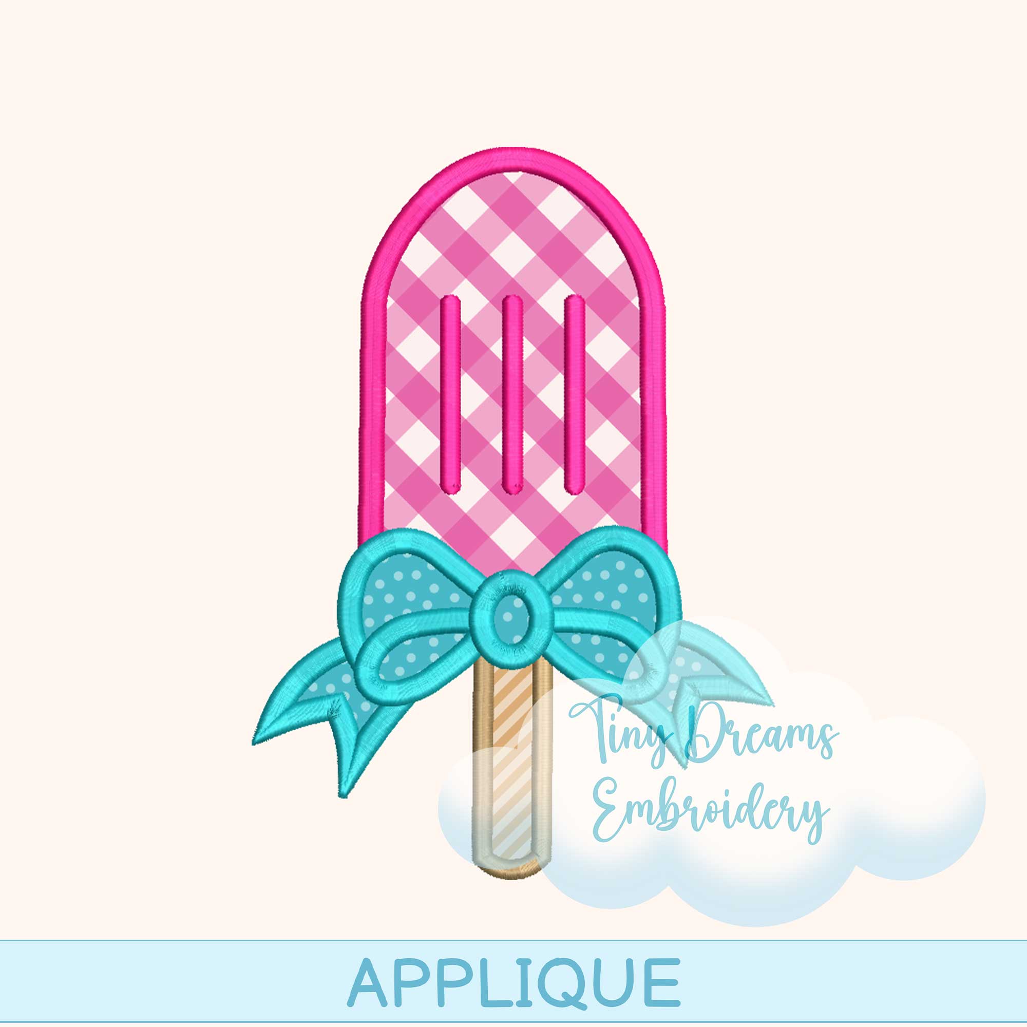 Popsicle Bow Applique Digital Machine Embroidery Design Coquette Popsicle Embroidery Design Applique Summer Ice Cream Embroidery Design Girl