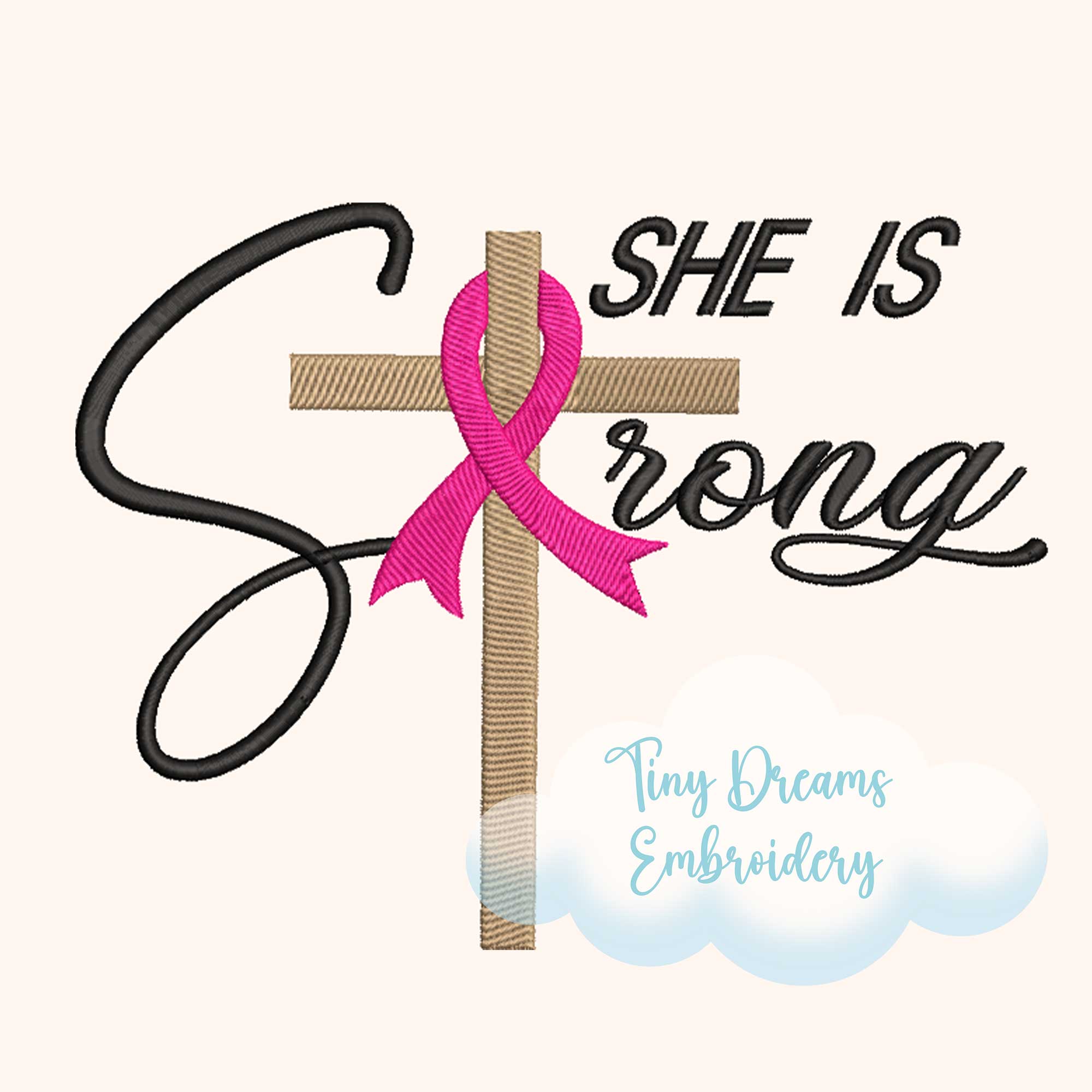 She Strong Digital Machine Embroidery Design Awareness Ribbon Embroidery Design Breast Cancer Fight Embroidery Design Pink Ribbon Cross God