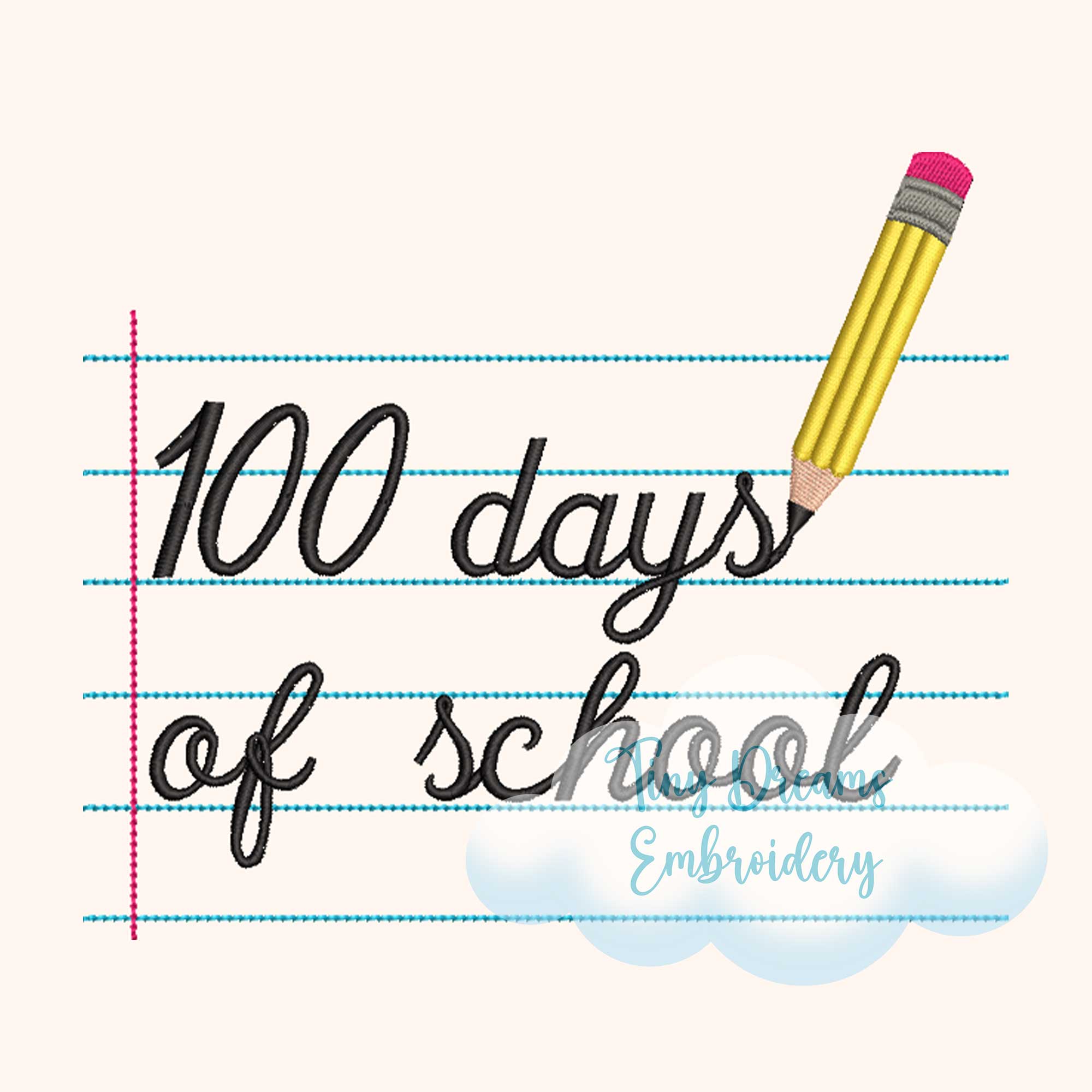 100 Days School Digital Machine Embroidery Design Boy Embroidery Design Girl Embroidery Design Notebook Pencil School Embroidery Design