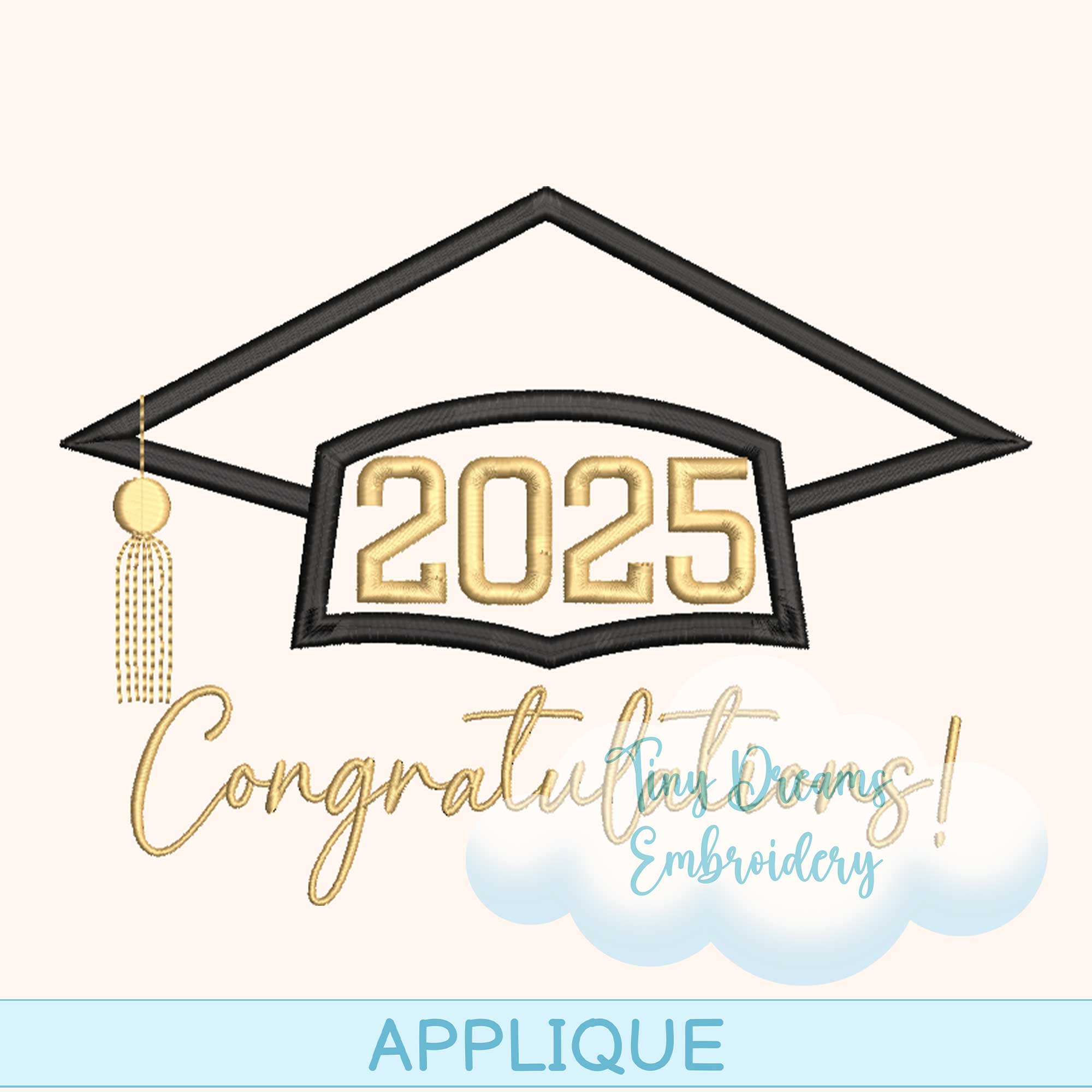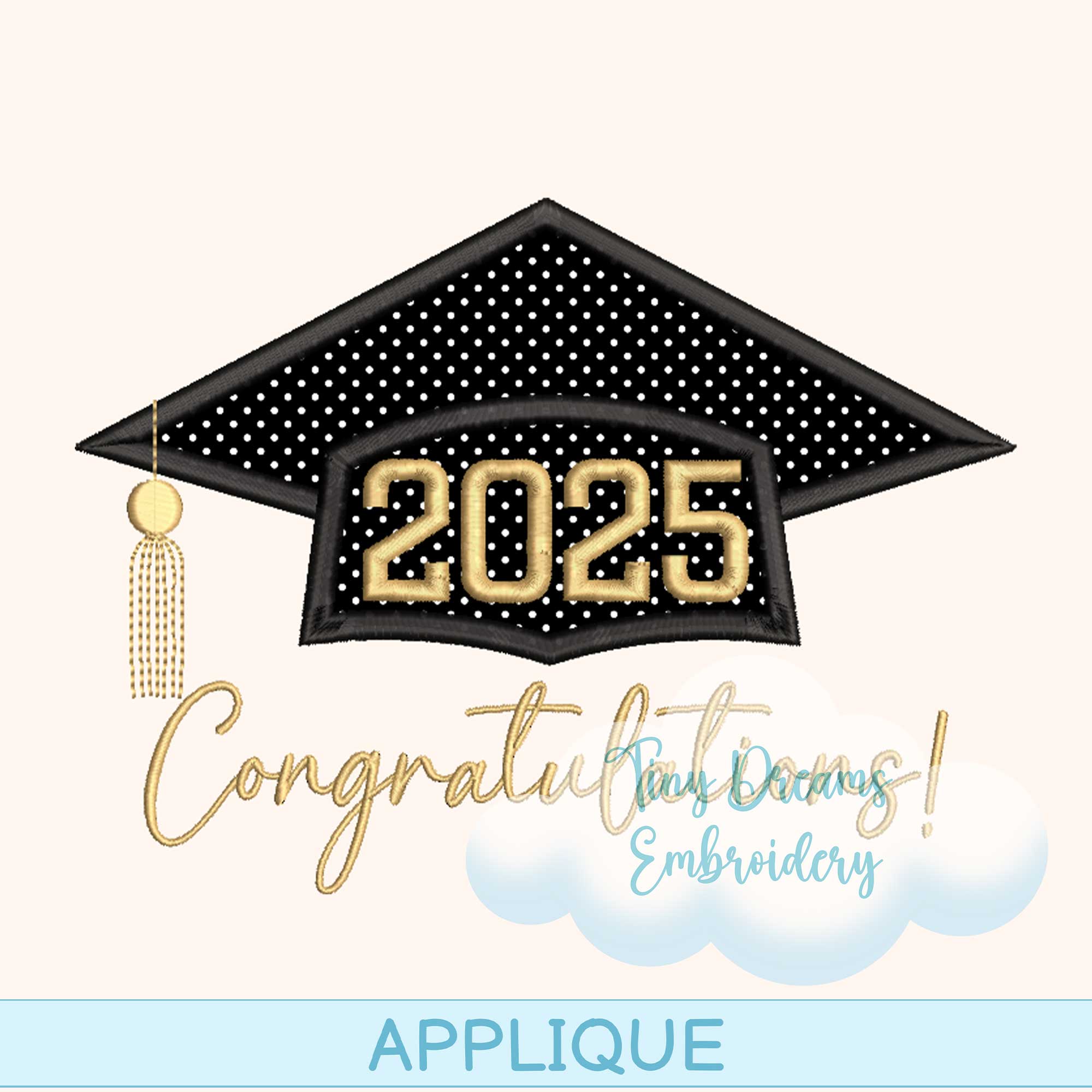 2025 Graduation Cap Applique Digital Machine Embroidery Design Grad Celebration Applique Embroidery Boy Girl Prom 2025 Embroidery Design