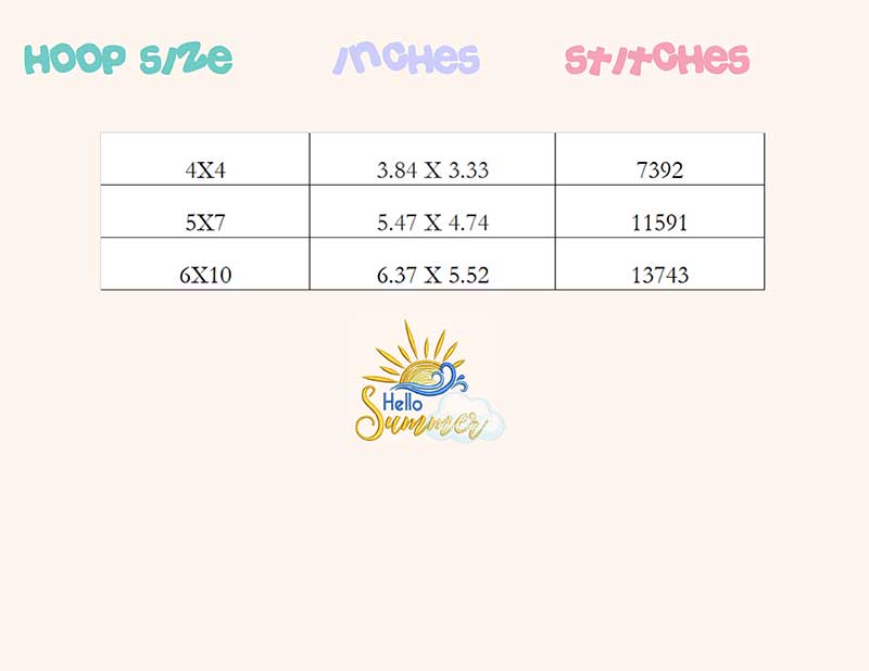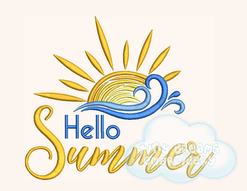 Hello Summer Digital Machine Embroidery Design Summer Lettering Design Embroidery Summer Season Embroidery Design Hello Embroidery Design