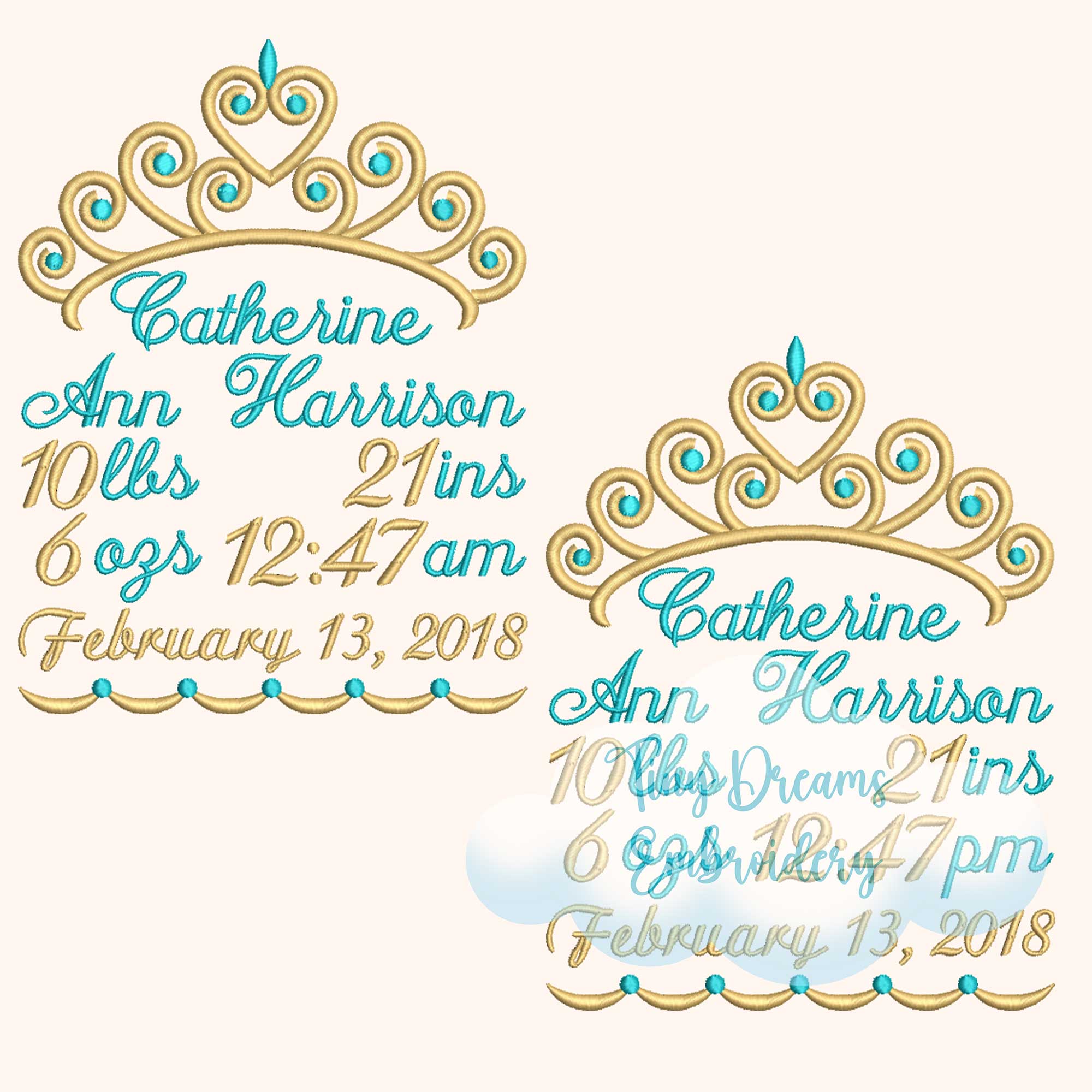 Princess Crown Birth Announcement Digital Machine Embroidery Design Baby Girl Newborn Embroidery Personalized Baby Princess Announcement