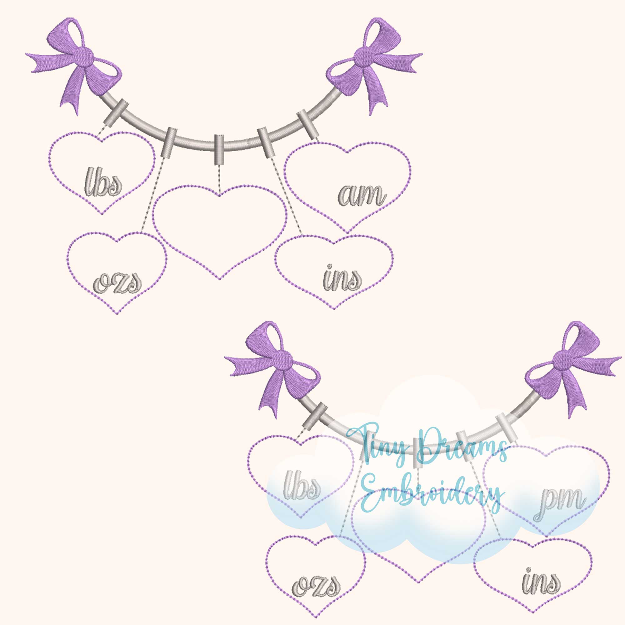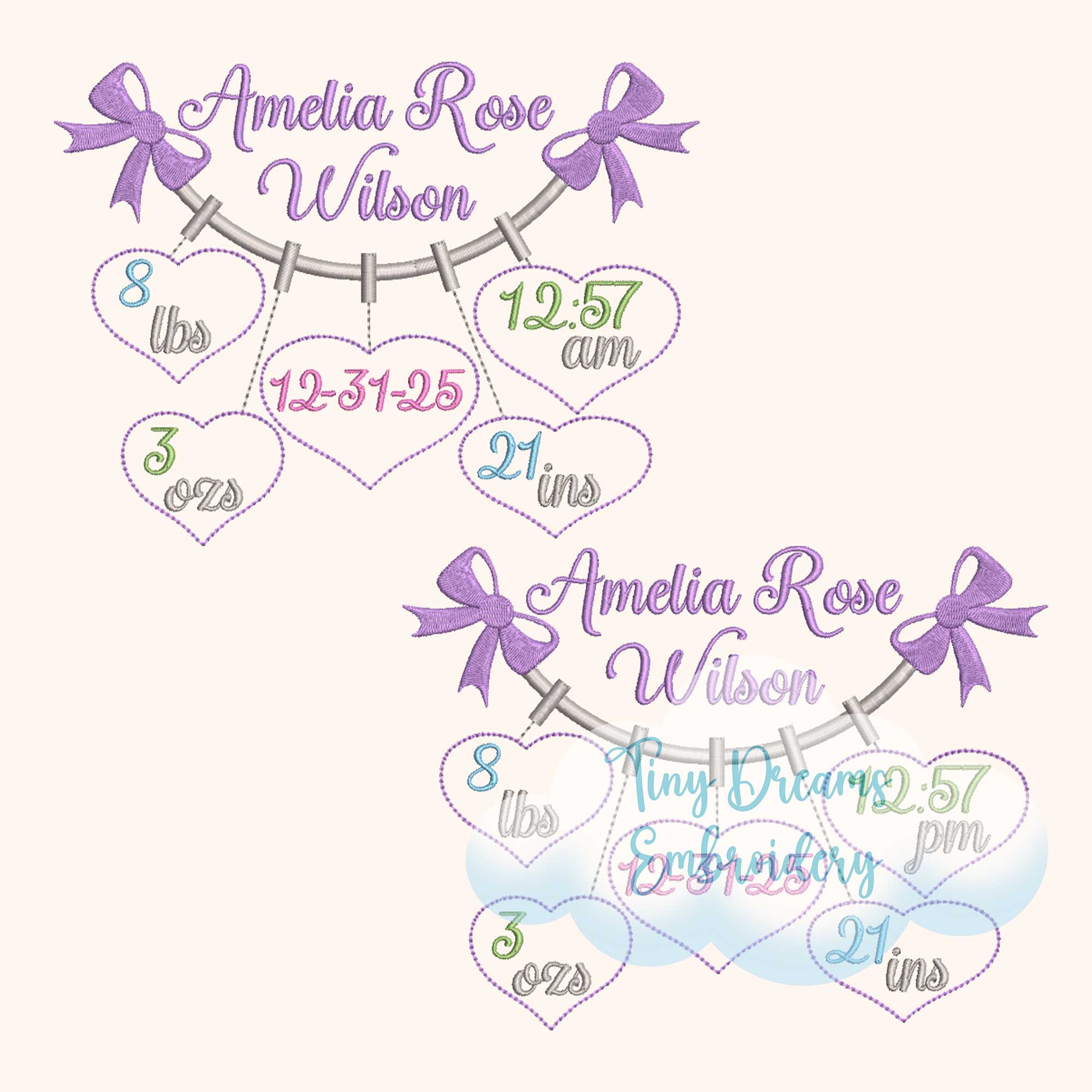 Bow Garland Birth Announcement Digital Machine Embroidery Design Baby Girl Newborn Embroidery Personalized Baby Announcement Garland Heart