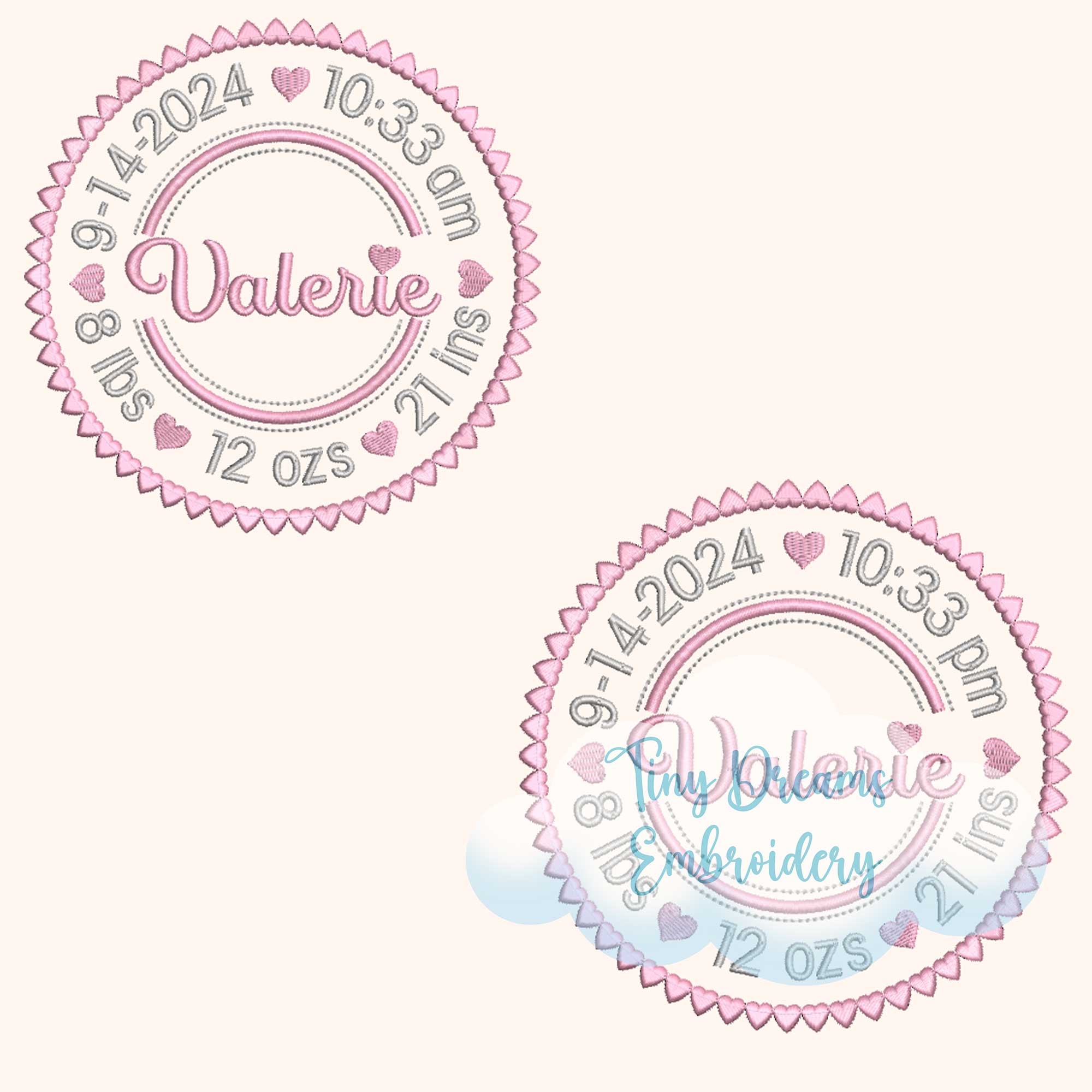 Heart Circle Birth Announcement Digital Machine Embroidery Design Baby Girl Newborn Embroidery Personalized Baby Announcement Heart Design