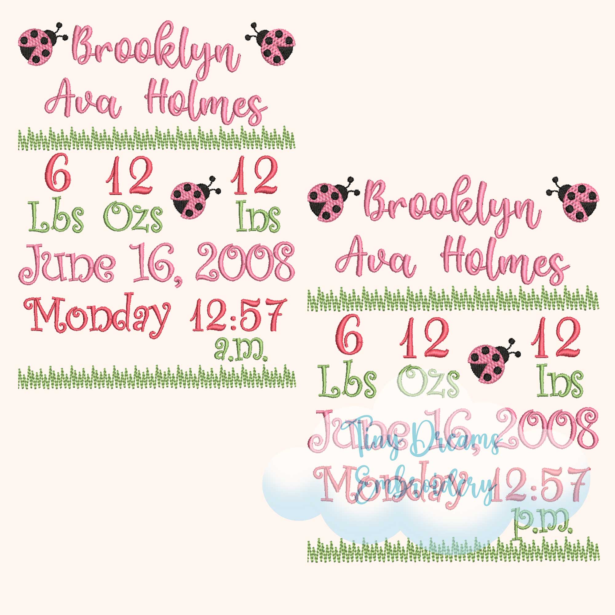 Ladybug Birth Announcement Digital Machine Embroidery Design Baby Girl Newborn Embroidery Personalized Baby Announcement Ladybug Spring Baby