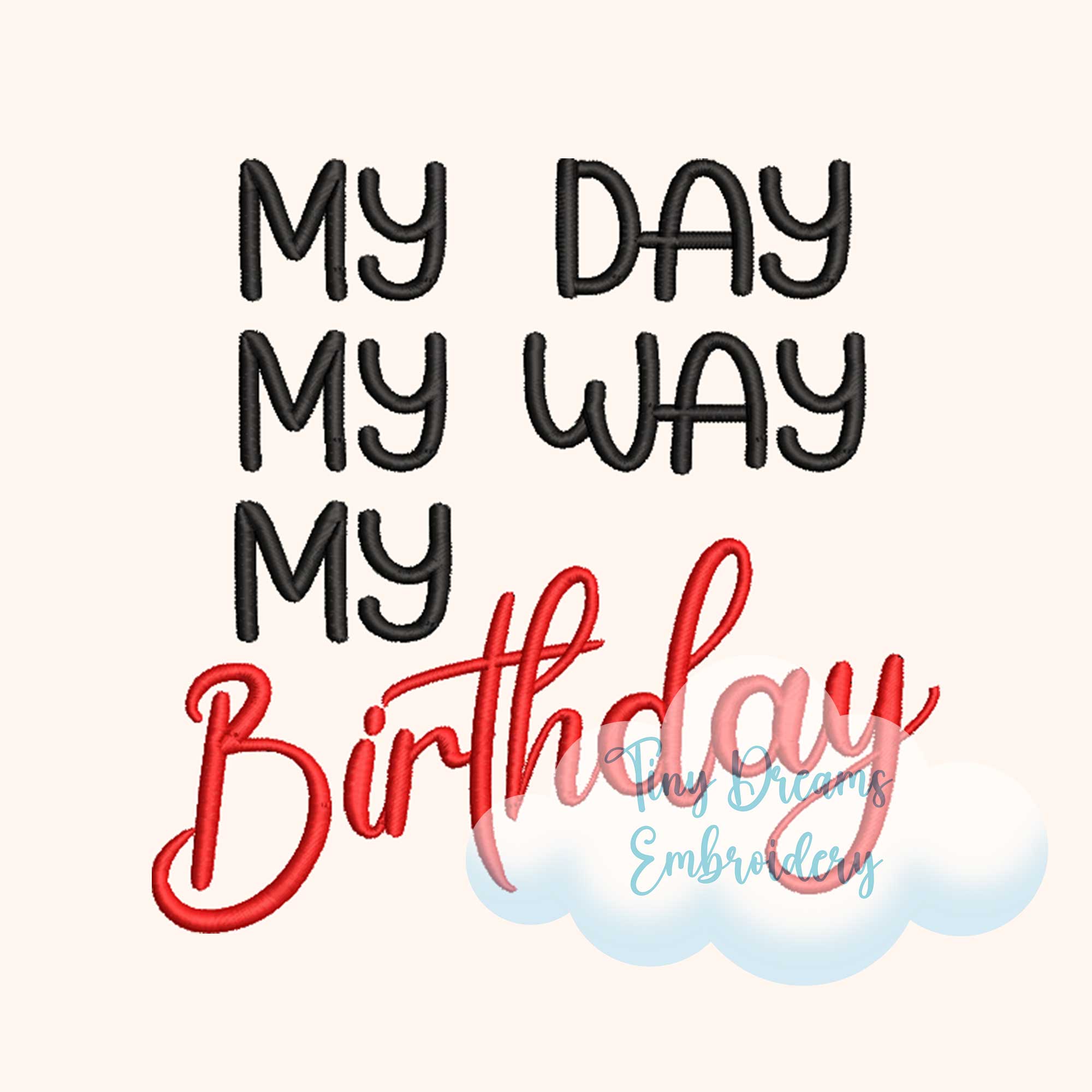 My Day My Way My Birthday Digital Machine Embroidery Design My Birthday Design Embroidery Happy Birthday Embroidery Design Celebration Party