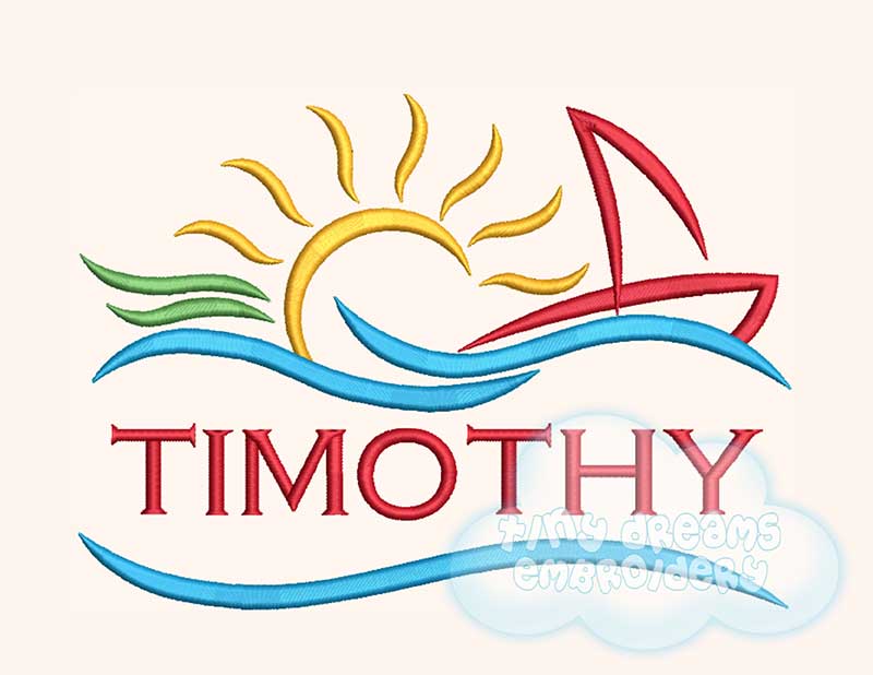 Sailboat Digital Machine Embroidery Design Sailboat Custom Monogram Embroidery Design Nautic Monogram Design Embroidery Summer Boy Name