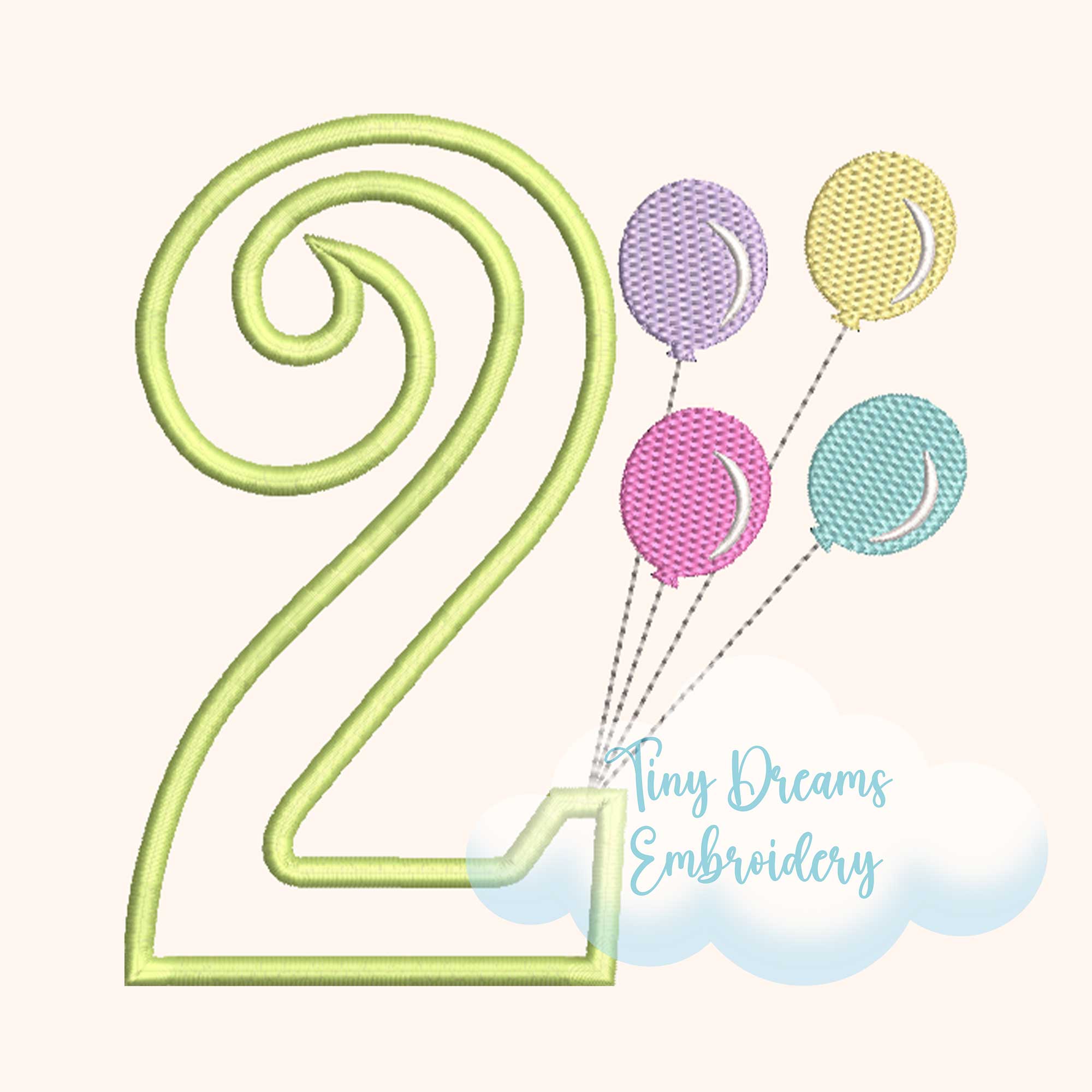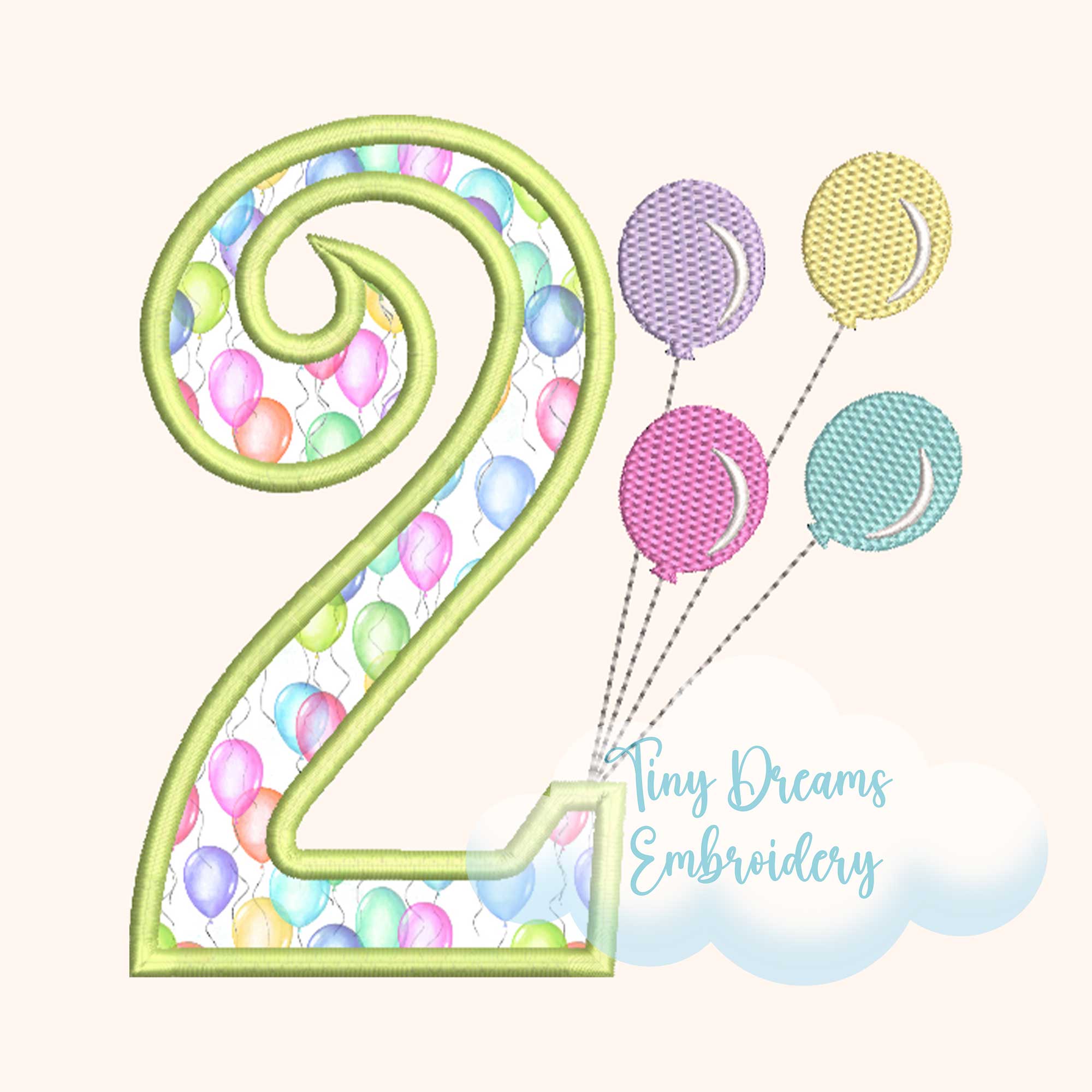 Second Birthday Applique Digital Machine Embroidery Design Baby Second Embroidery Design Boy Girl Birthday Applique Embroidery Balloon