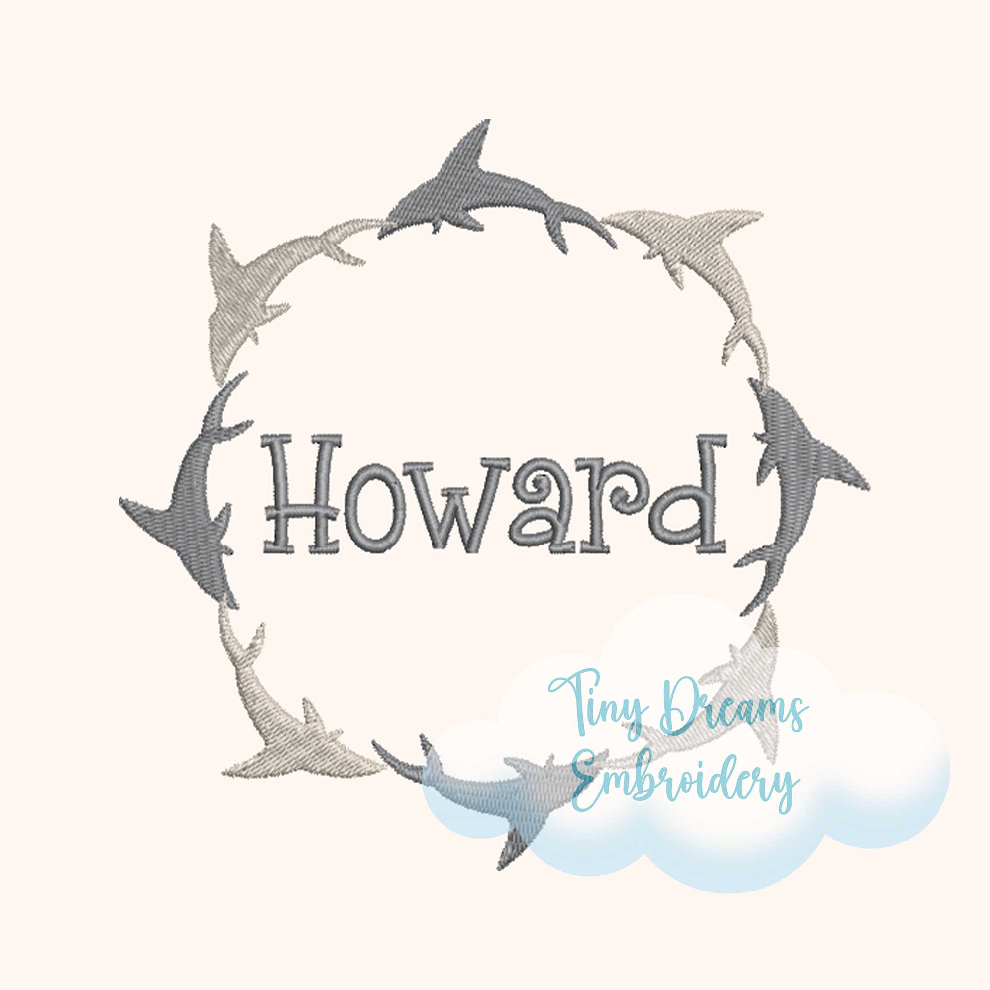 Shark Digital Machine Embroidery Design Beach Sea Custom Name Embroidery Design Baby Boy Embroidery Shark Boy Circle Monogram Embroidery