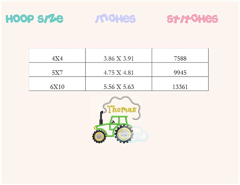 Farm Tractor Digital Machine Embroidery Design Applique Boy Custom Monogram Design Embroidery Baby Boy Personalized Name Vehicle Applique