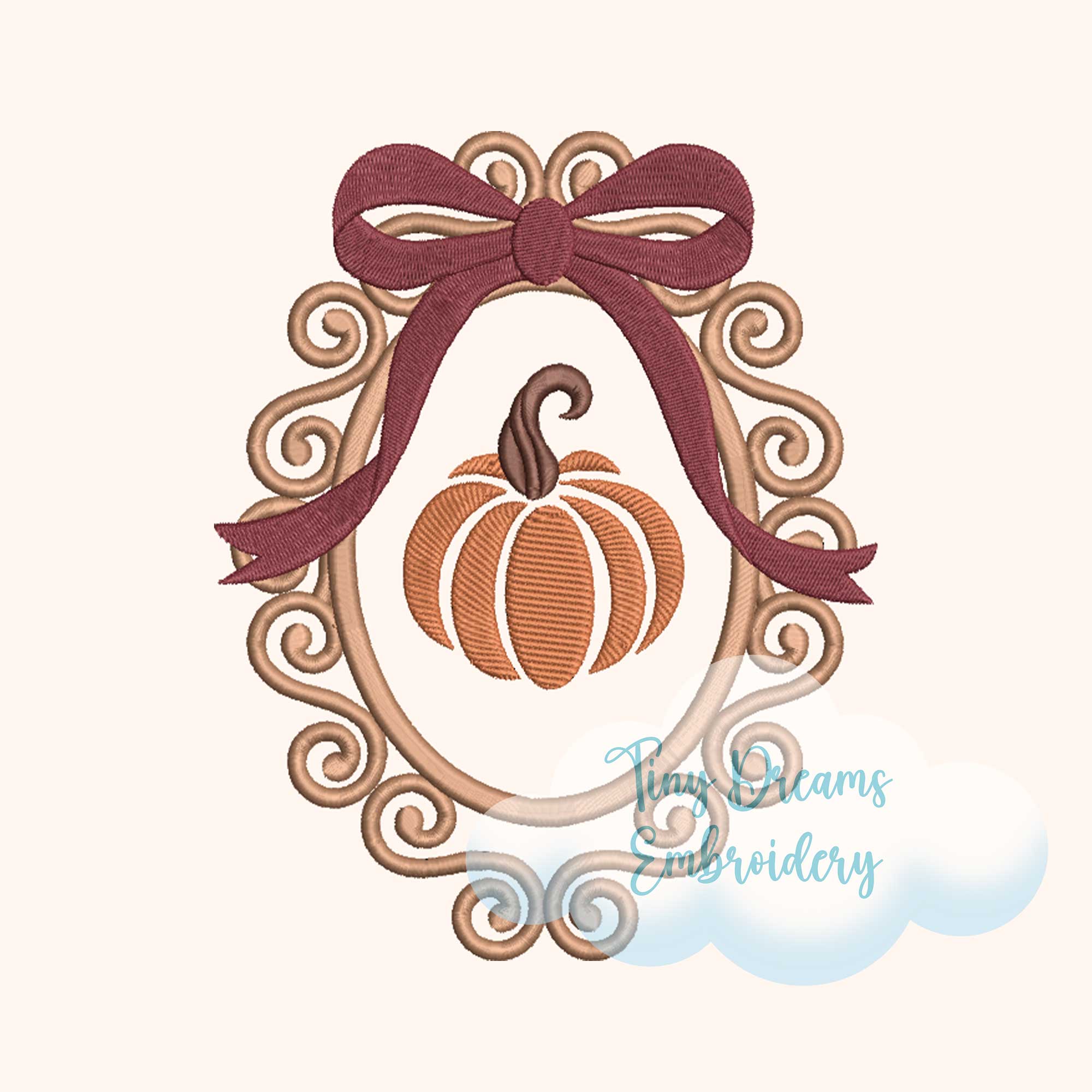 Autumn Pumpkin Cameo Digital Machine Embroidery Design Cameo Border Bow Embroidery Design Autumn Pumpkin Embroidery Design Fall Thanksgiving