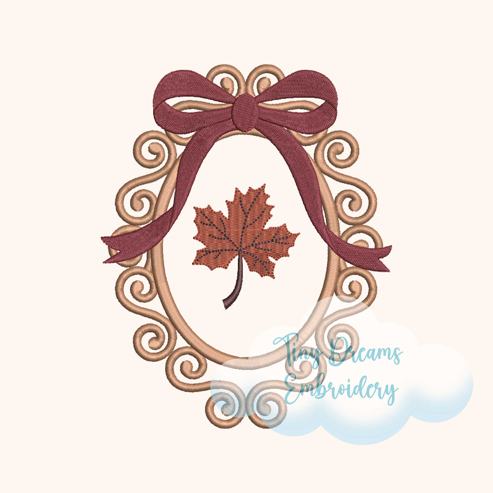 Autumn Leaf Cameo Digital Machine Embroidery Design Cameo Border Bow Embroidery Design Autumn Leaves Embroidery Design Fall Thanksgiving Bow