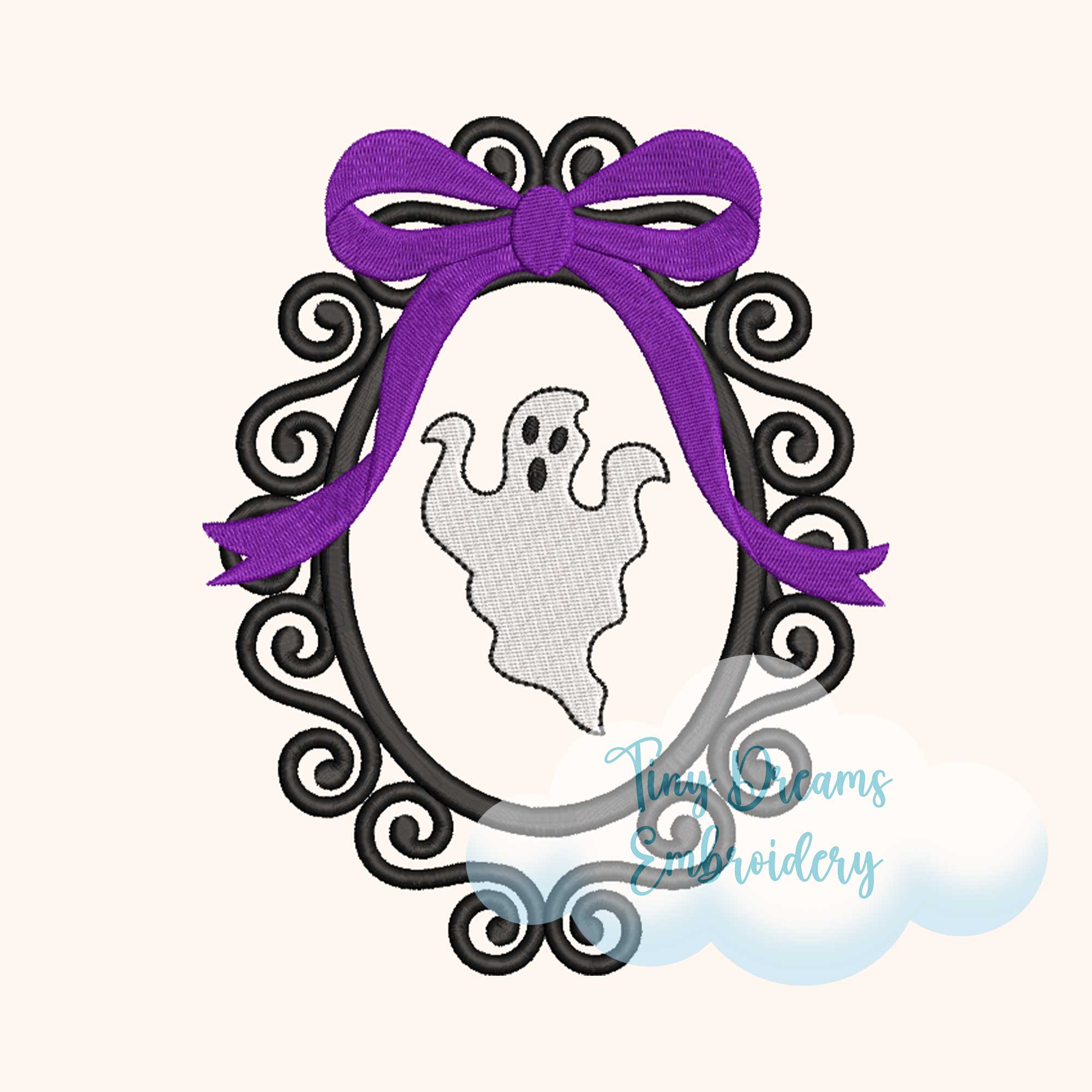 Ghost Halloween Cameo Digital Machine Embroidery Design Cameo Border Bow Embroidery Design Spooky Season Embroidery Design Happy Halloween