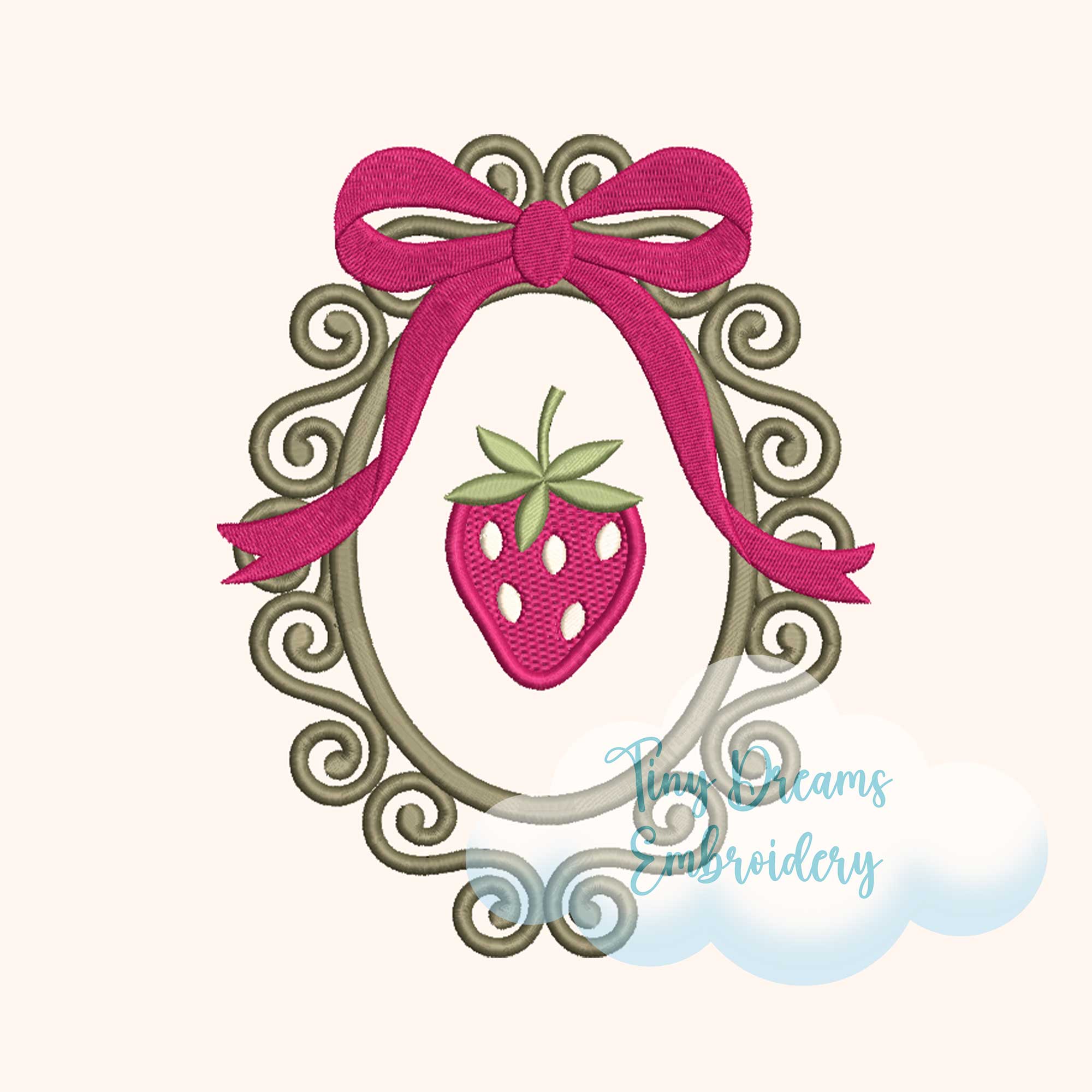 Strawberry Cameo Digital Machine Embroidery Design Cameo Border Bow Embroidery Design Berry Kitchen Embroidery Fruit Strawberry Embroidery