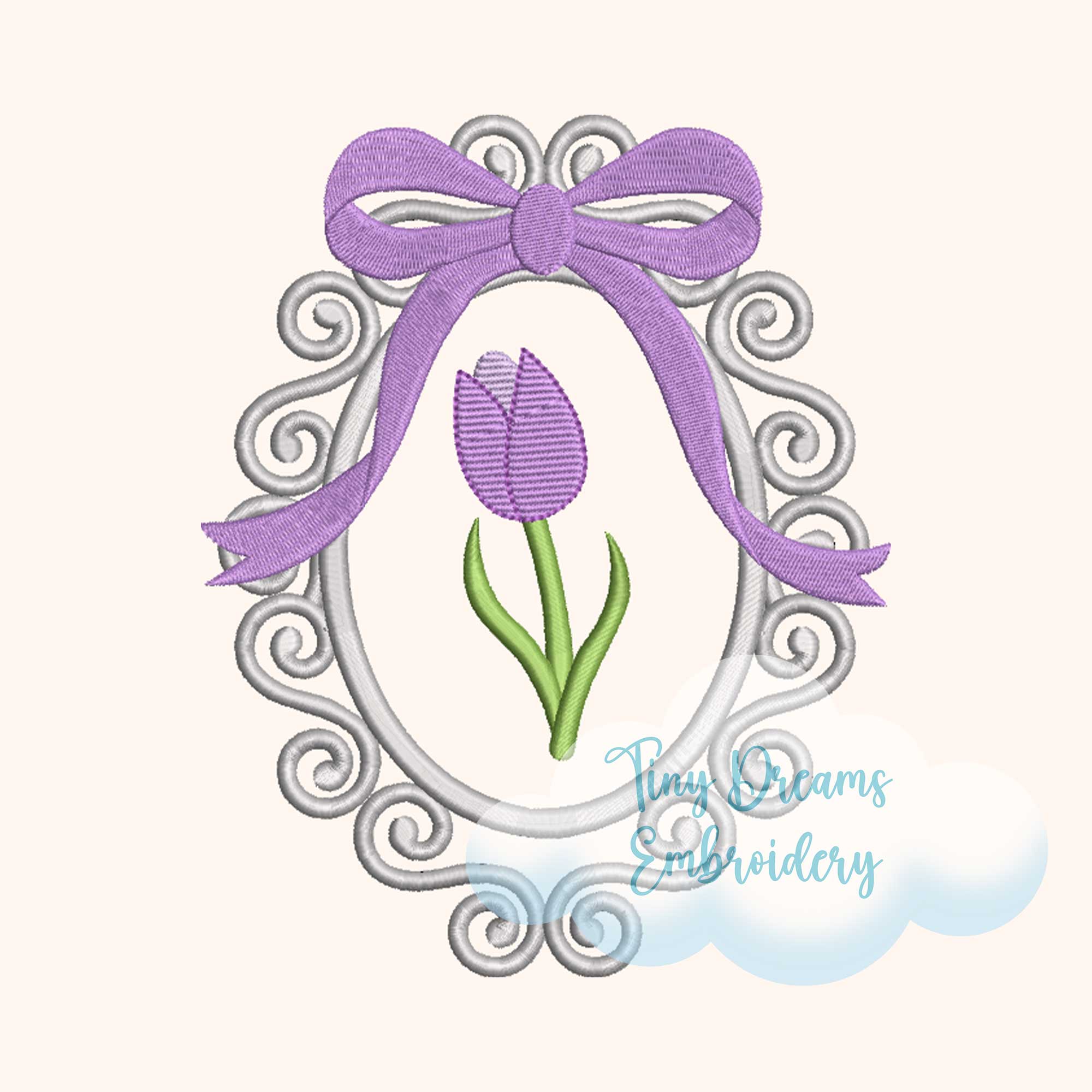 Tulip Flower Cameo Digital Machine Embroidery Design Cameo Border Bow Embroidery Design Spring Tulip Embroidery Floral Tulip Embroidery Bow