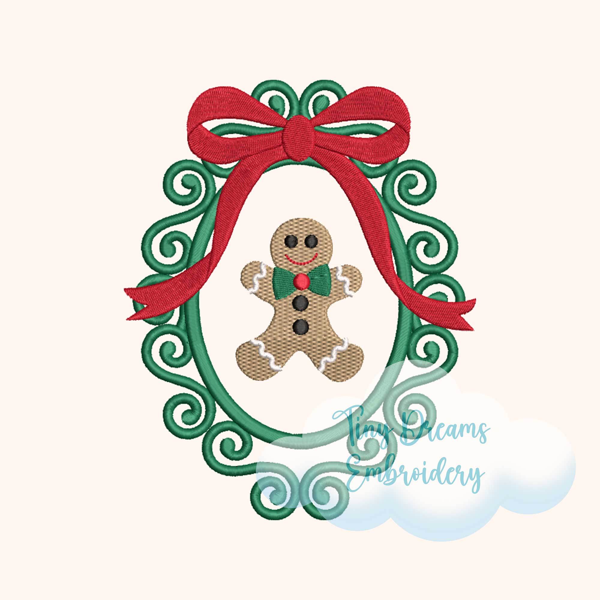 Gingerbread Cookie Cameo Digital Machine Embroidery Design Cameo Border Bow Embroidery Design Christmas Kitchen Embroidery Christmas Cookie