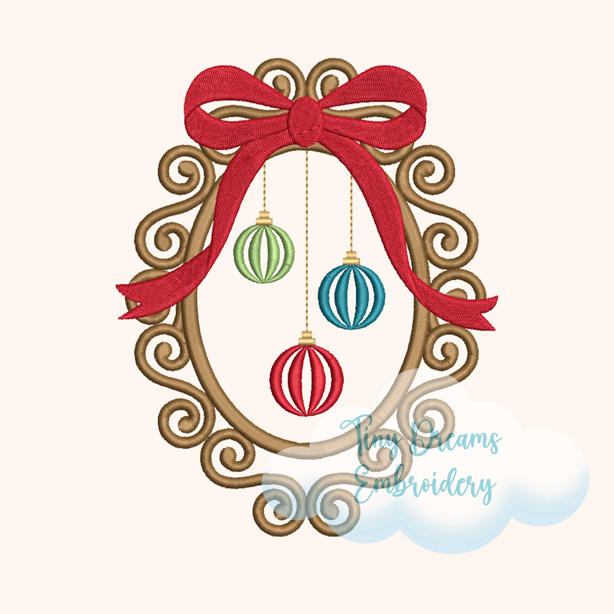 Christmas Ornament Cameo Digital Machine Embroidery Design Cameo Border Bow Embroidery Design Christmas Cameo Embroidery Ornament Design