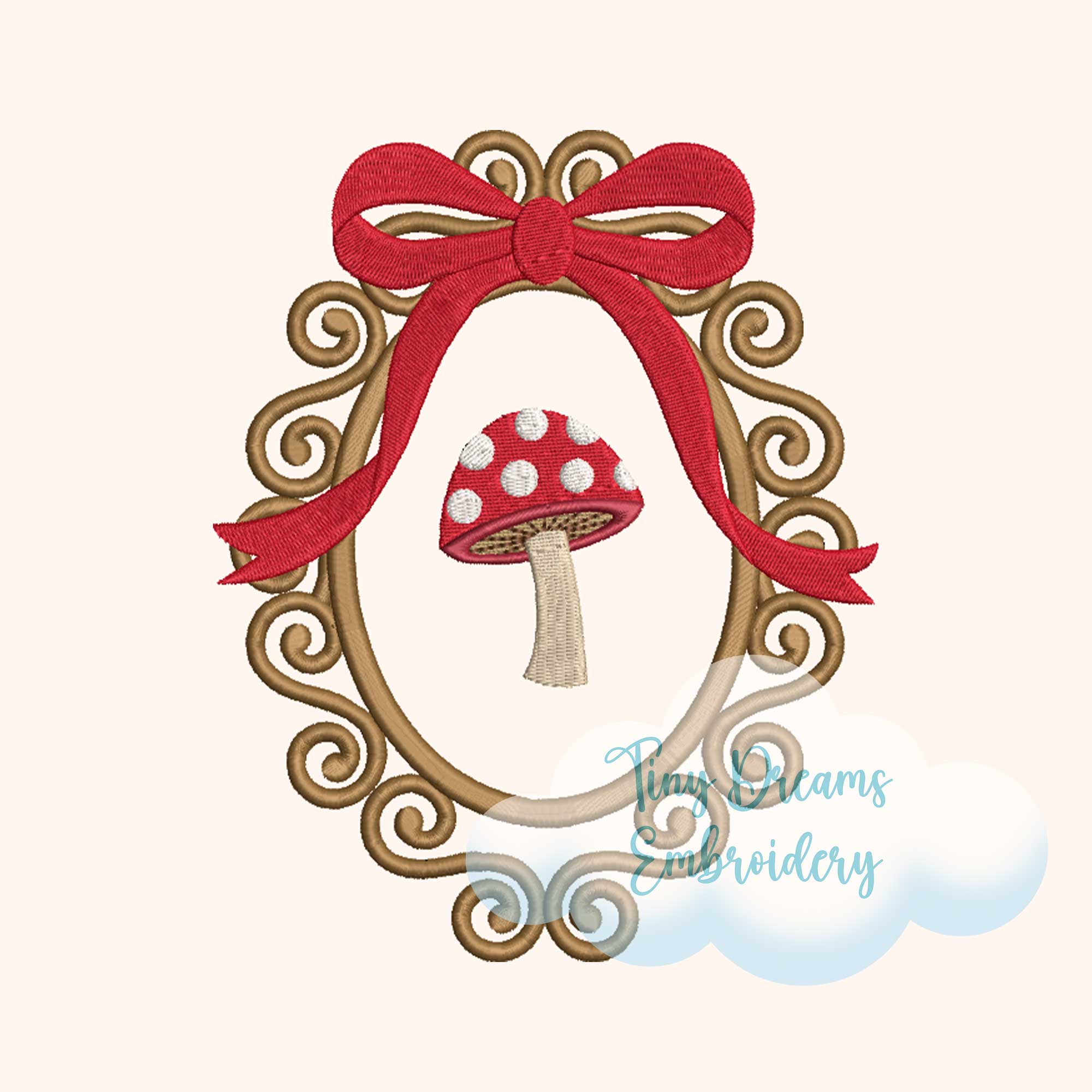Mushroom Cameo Digital Machine Embroidery Design Cameo Border Bow Embroidery Design Autumn Fall Embroidery Design Fall Thanksgiving Season