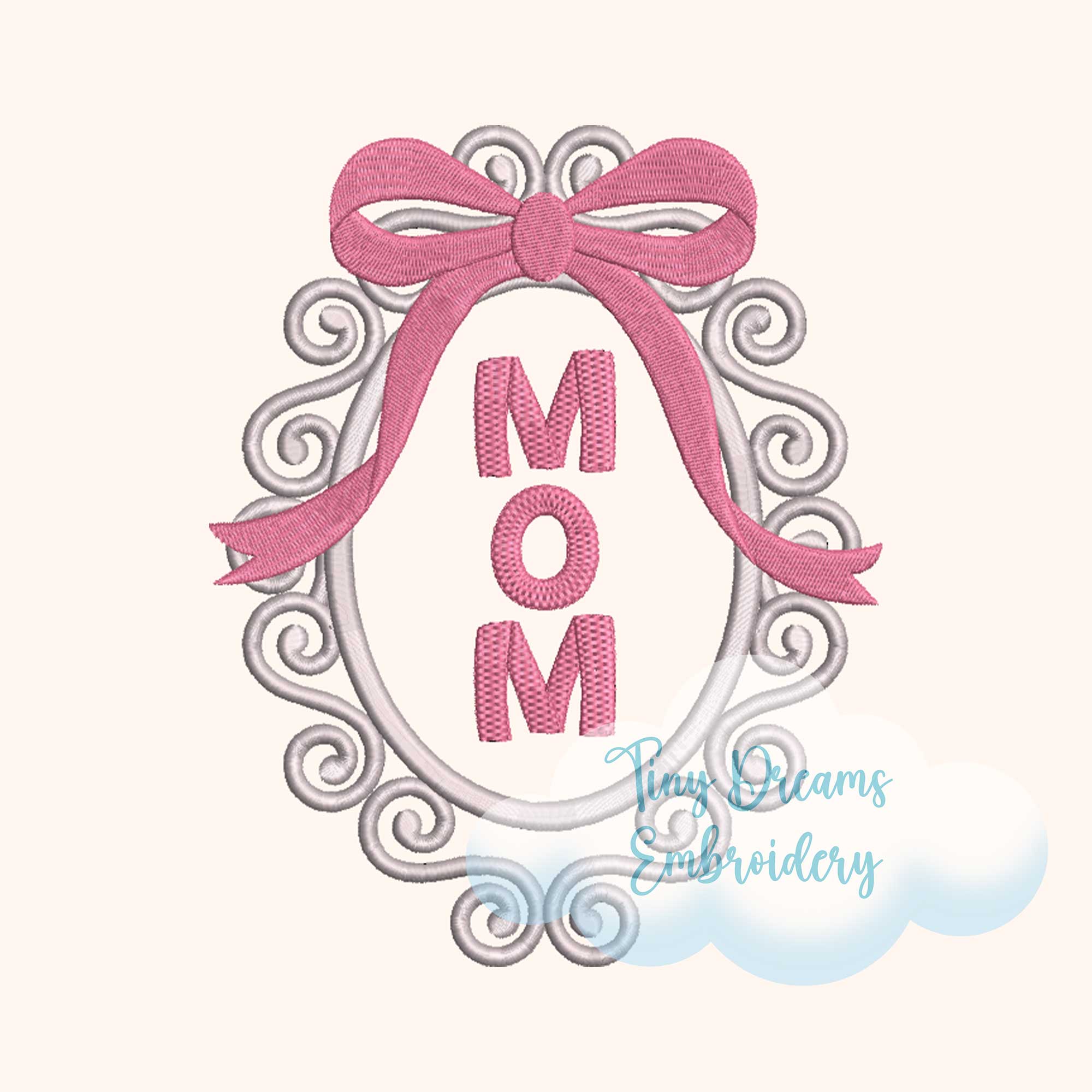 Mom Cameo Digital Machine Embroidery Design Cameo Border Bow Embroidery Design Mother Embroidery Design Happy Mothers Day Embroidery Mommy