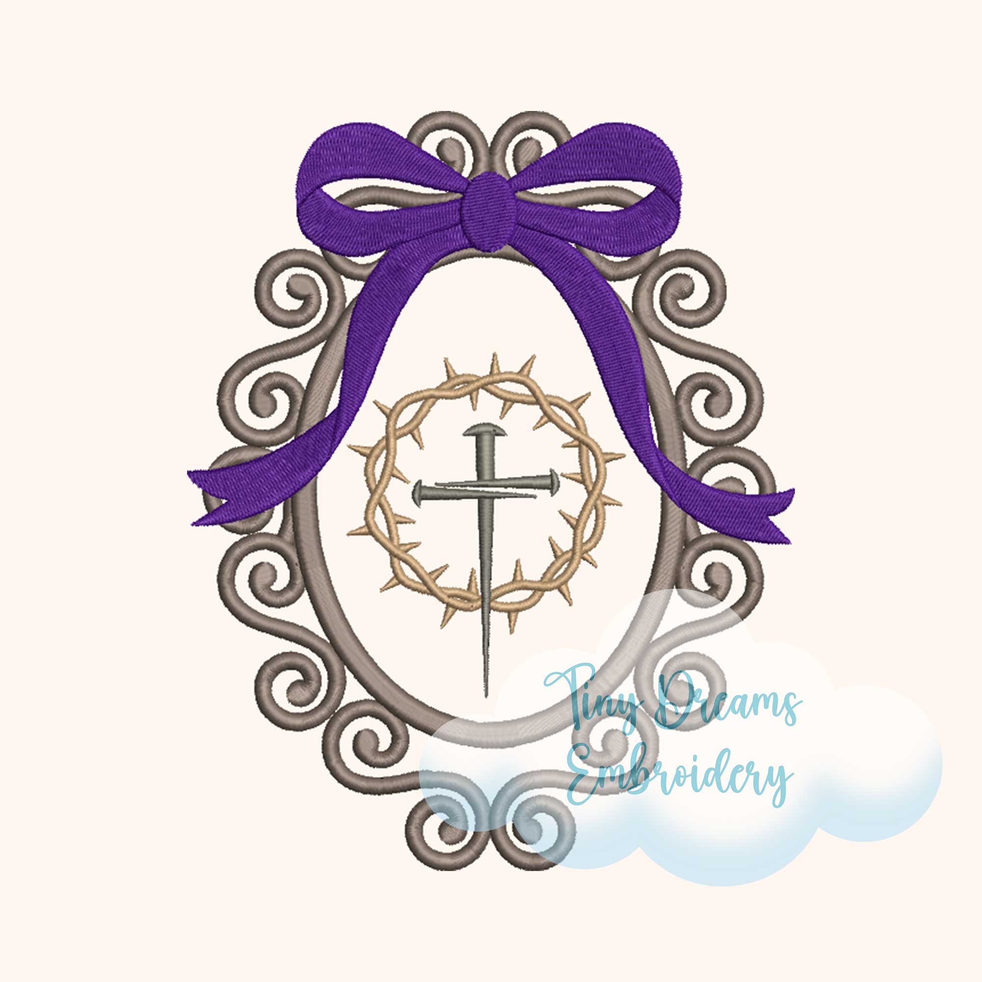 Jesus Crown Cameo Digital Machine Embroidery Design Cameo Border Bow Cross Nails Christian Embroidery Design Religious Easter Embroidery Bow
