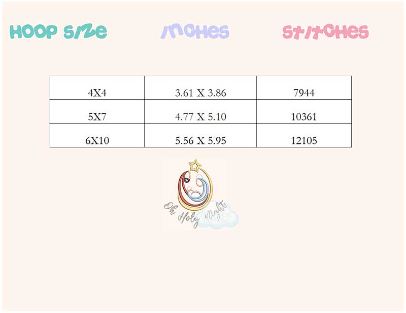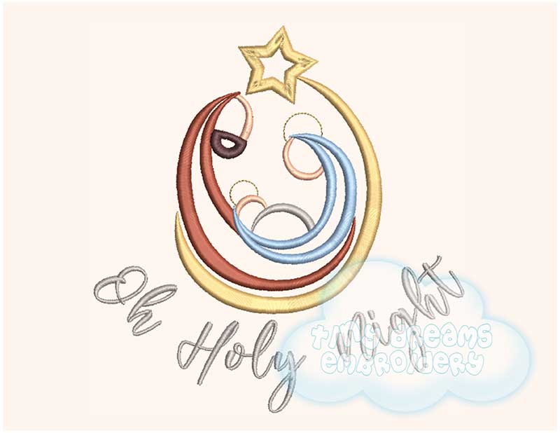 O Holy Night Christmas Eve, Nativity, Baby Jesus, Star Embroidery Machine Embroidery Design (Digital Download)