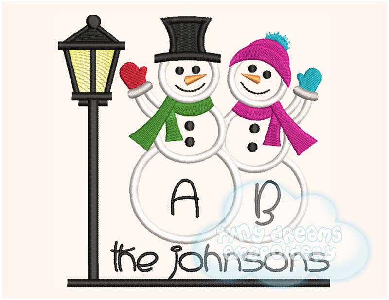 Snowman boy and girl couple monogram/name (name/monogram/font not included) embroidery design