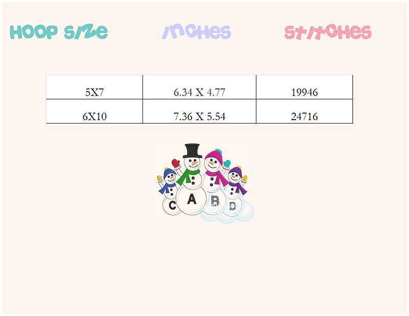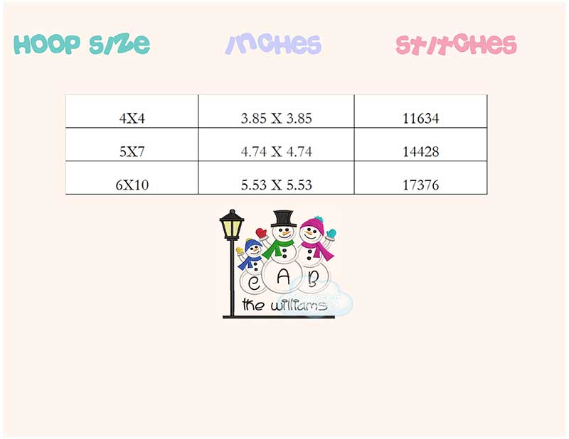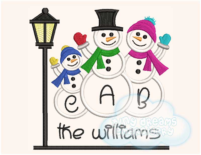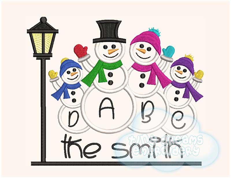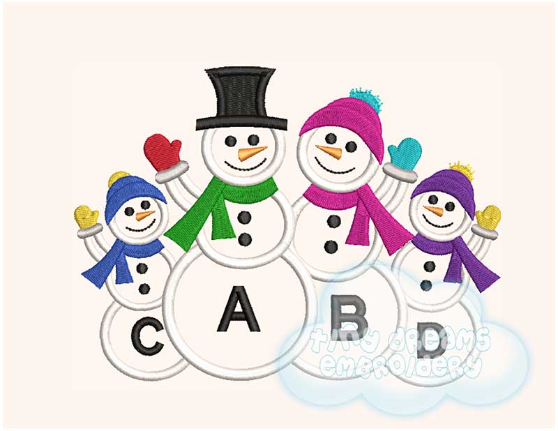 Snowman family of 4 monogram/name (name/monogram/font not included) embroidery design