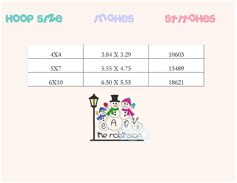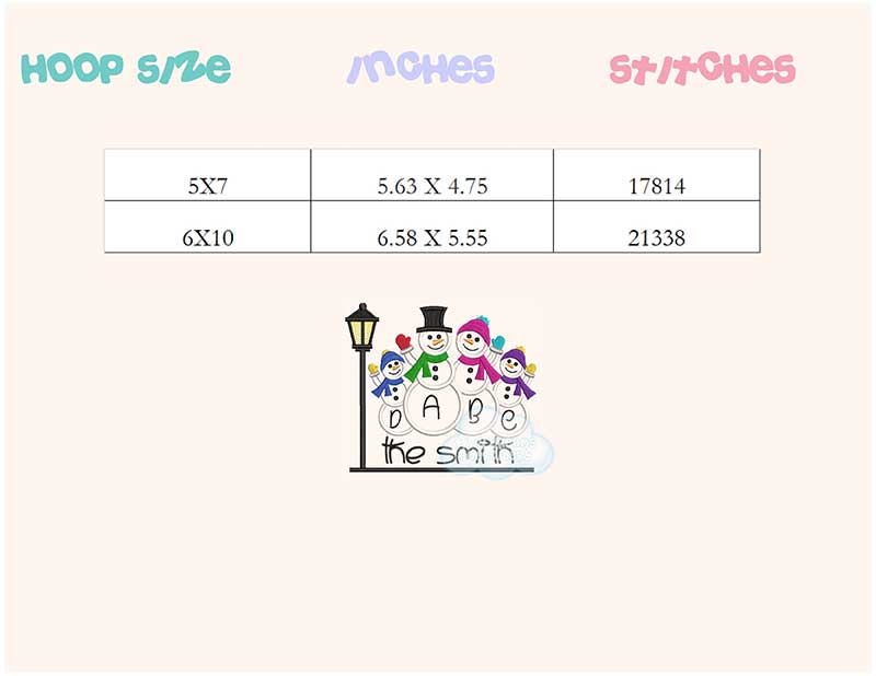 Snowman monogram/name (name/monogram/font not included) embroidery design