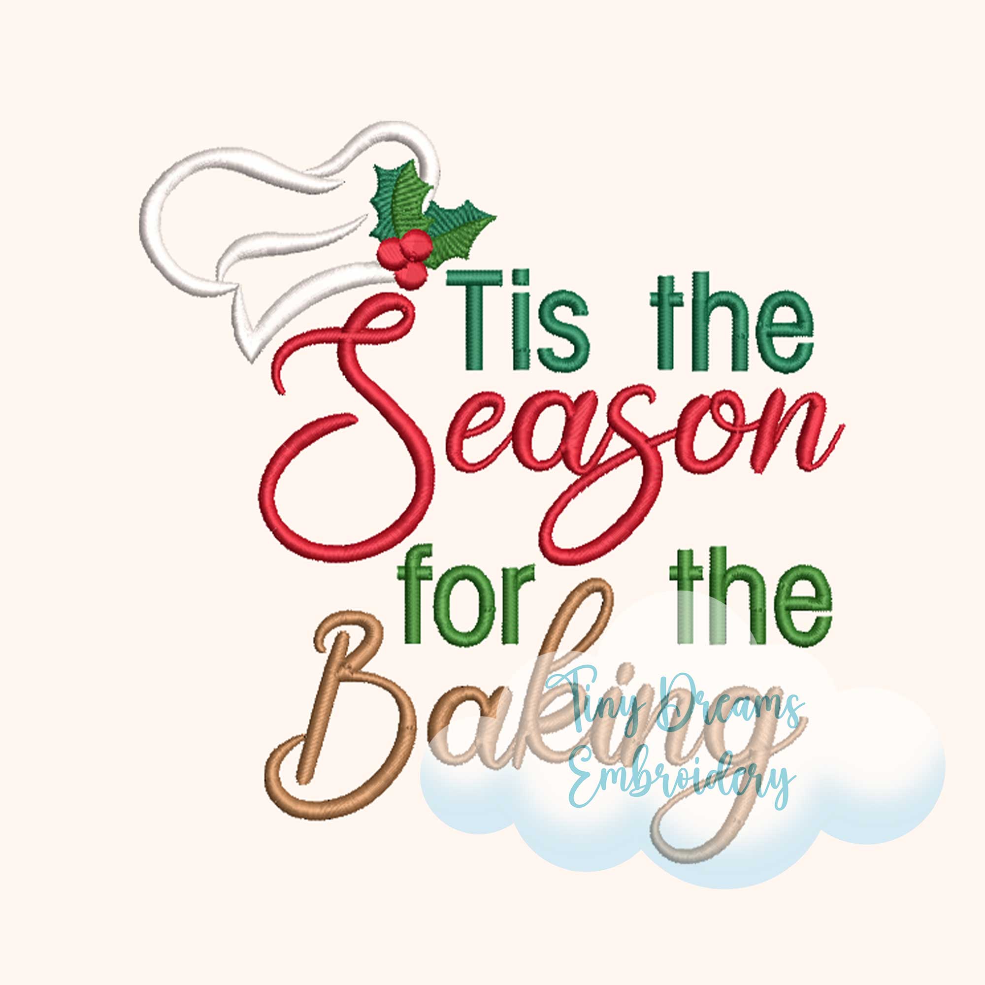 Tis The Season Bake Cookies Embroidery Machine Design: Christmas Mistletoe Chef Hat (Digital Download)